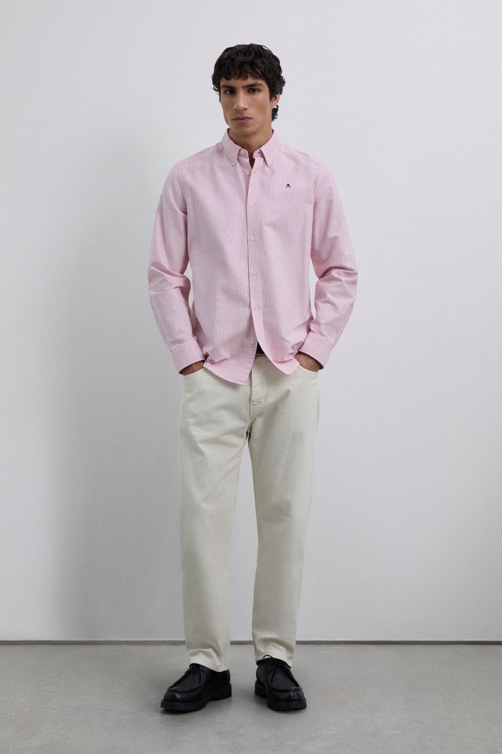 Oxford shirt made of 100% BCI cotton. Button fastening, Striped print. Long sleeves with button fastening. Contrast embroidered skull detail on the chest.