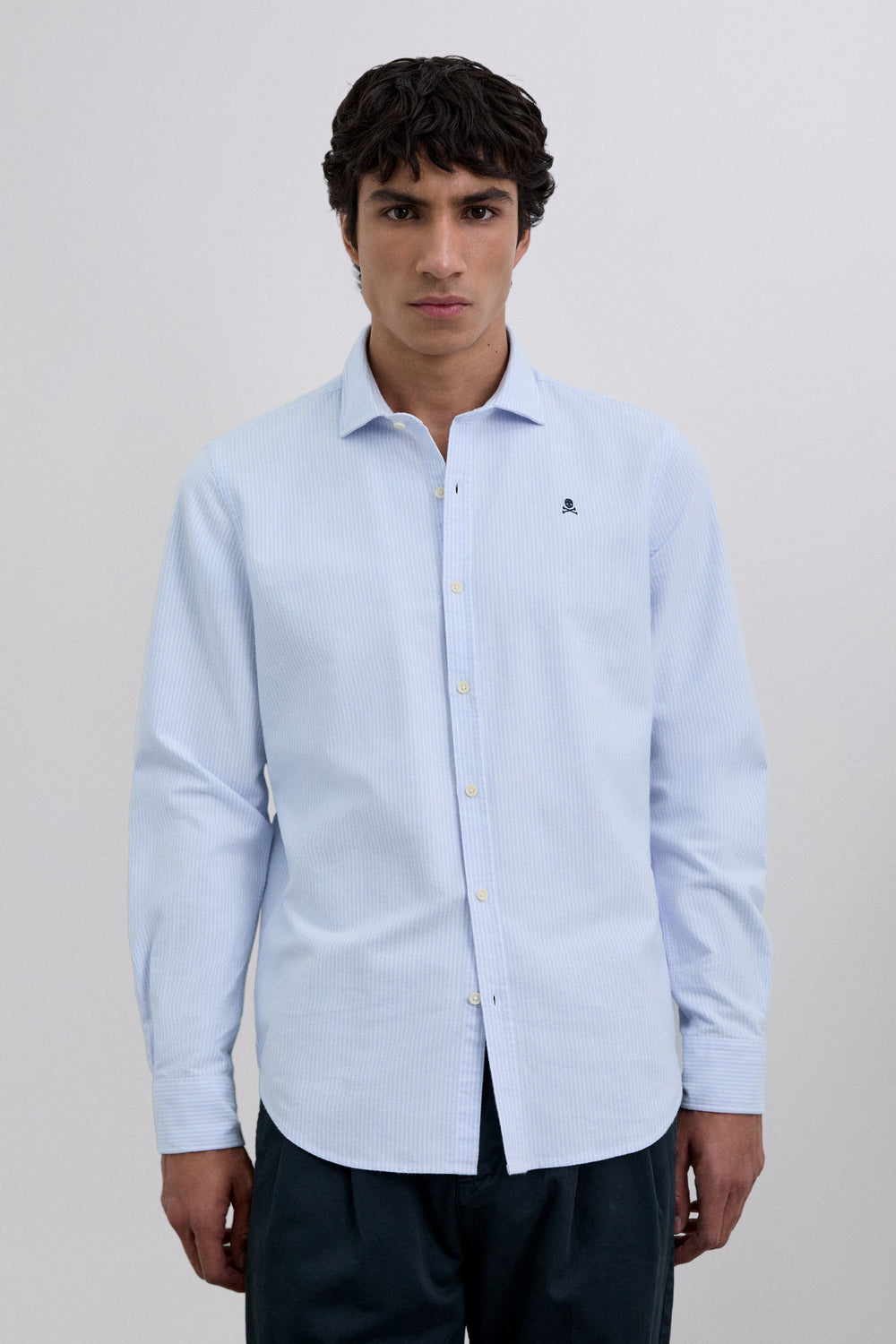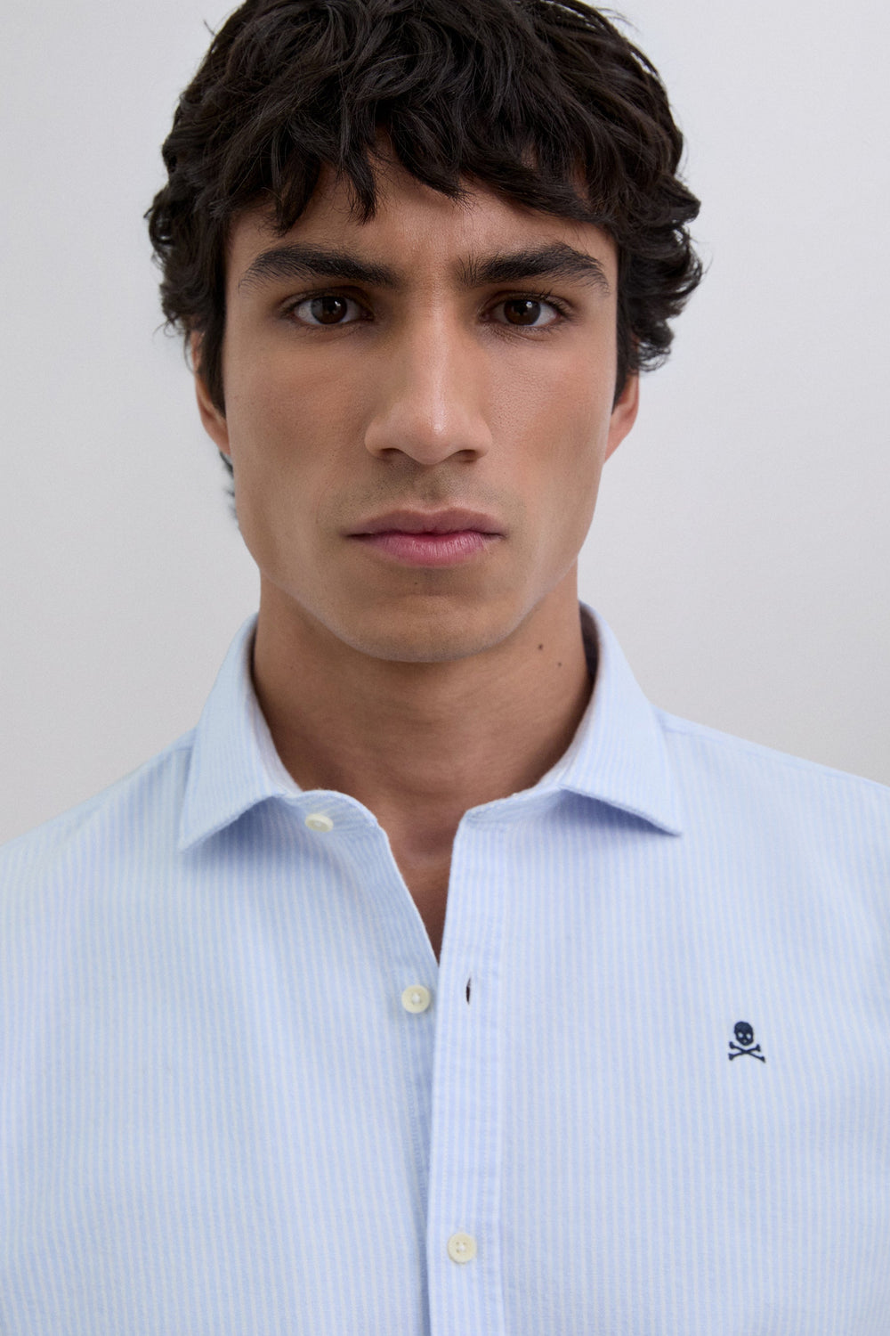 Oxford shirt made of 100% BCI cotton. Regular Fit. Stripe print. Long sleeves. Button fastening at front and cuffs. Contrast embroidered skull detail on the chest.