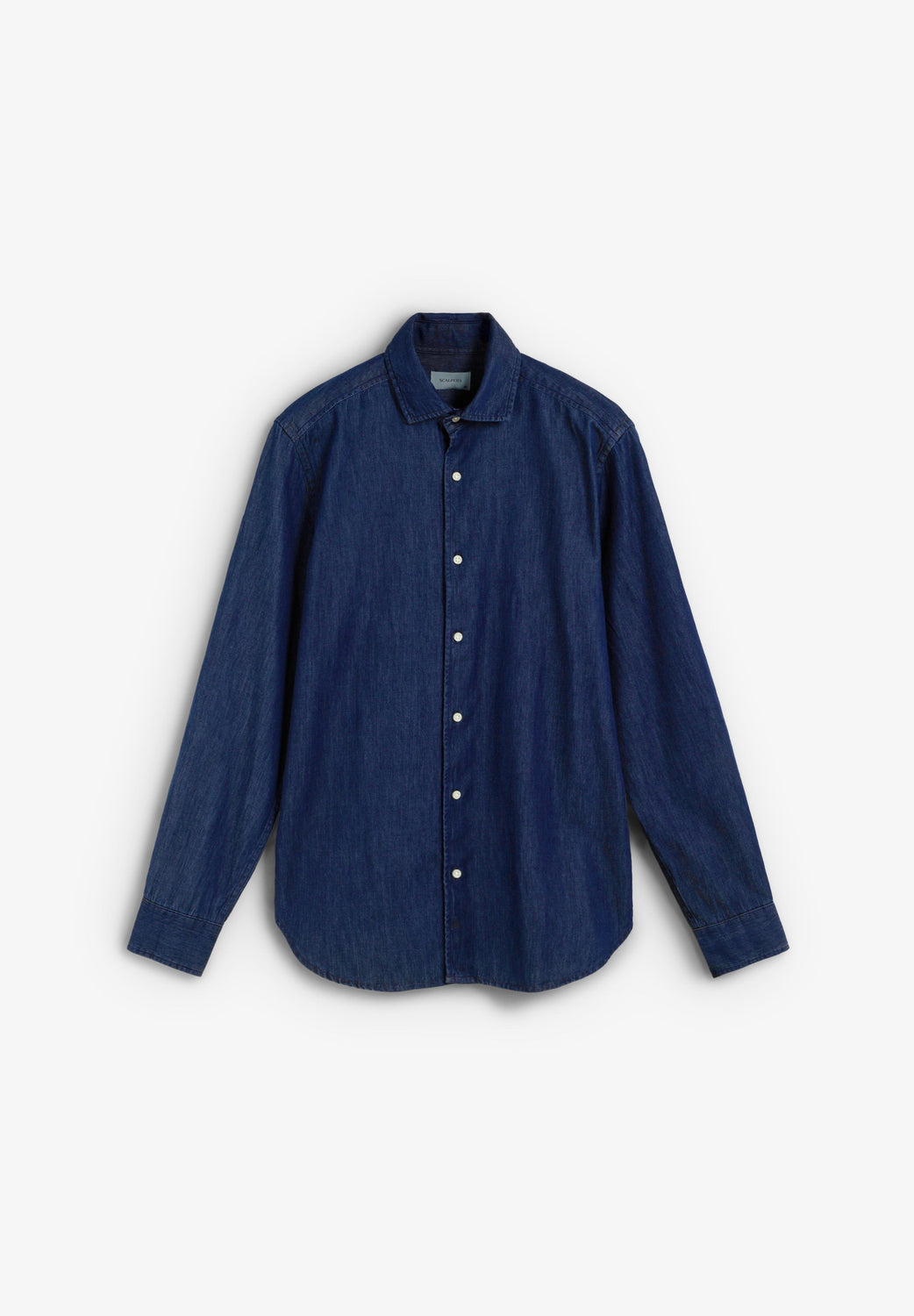 Denim shirt made of 100% cotton with peach finish. Regular fit, spread collar and button fastening. Long sleeves with buttoned cuffs. Contrast embroidered skull on the chest.