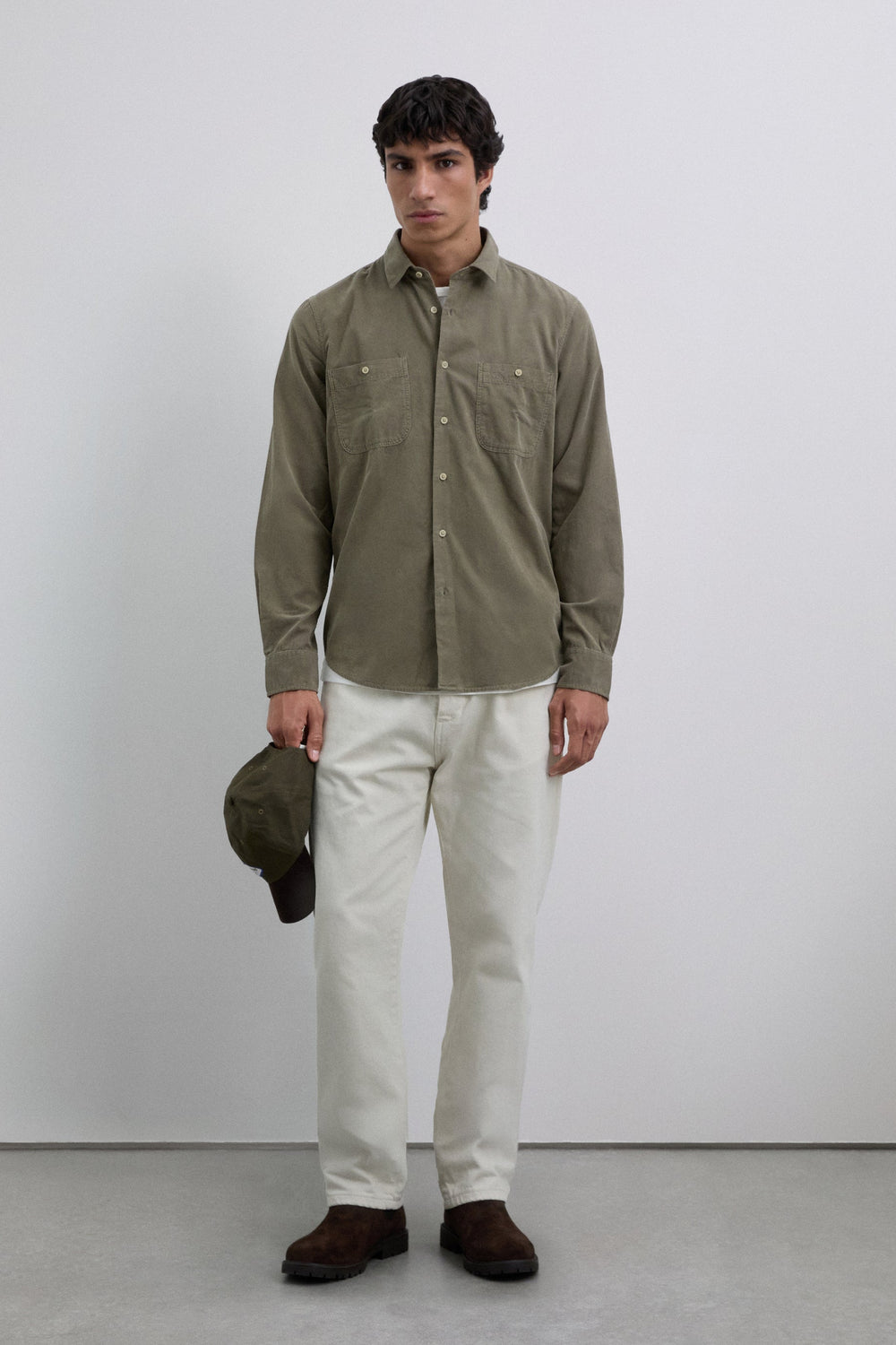 Shirt made of 100% BCI cotton corduroy. Regular fit. Long sleeves with buttoned cuffs. Patch chest pockets. Front button fastening.