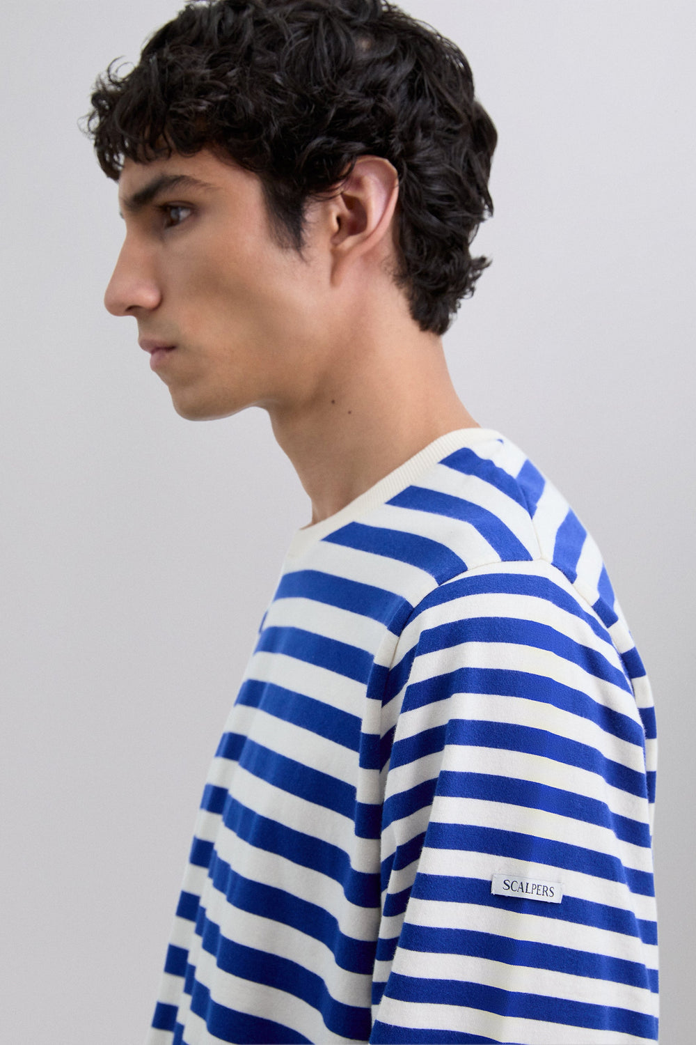 T-shirt with stripe print. Made of 100% BCI cotton. Regular fit. Round neck. Contrast neckline and cuff. Long sleeves.