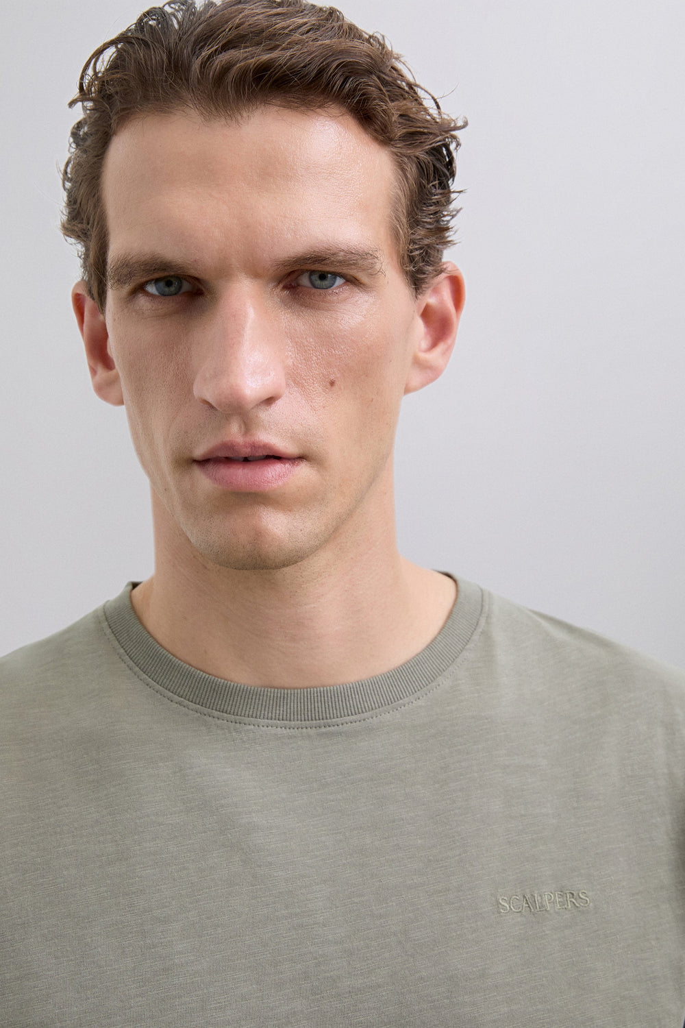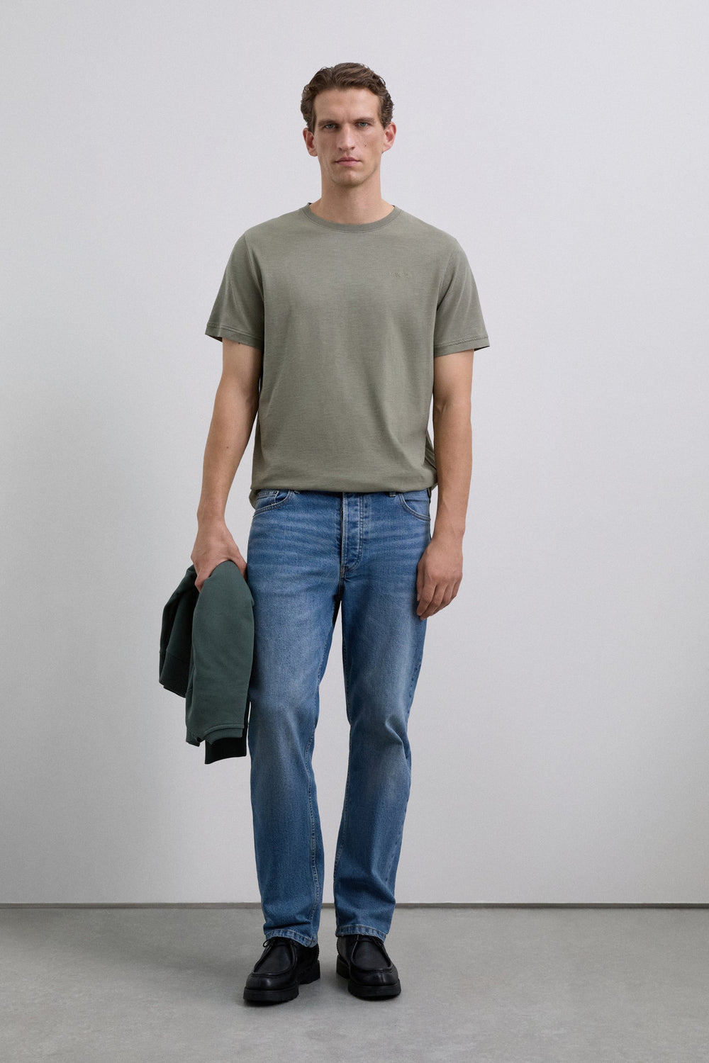 T-shirt made of 100% organic cotton. Regular Fit. Short sleeve. Round neck. Faded effect. Matching embroidered logo on the chest. Ribbed collar.