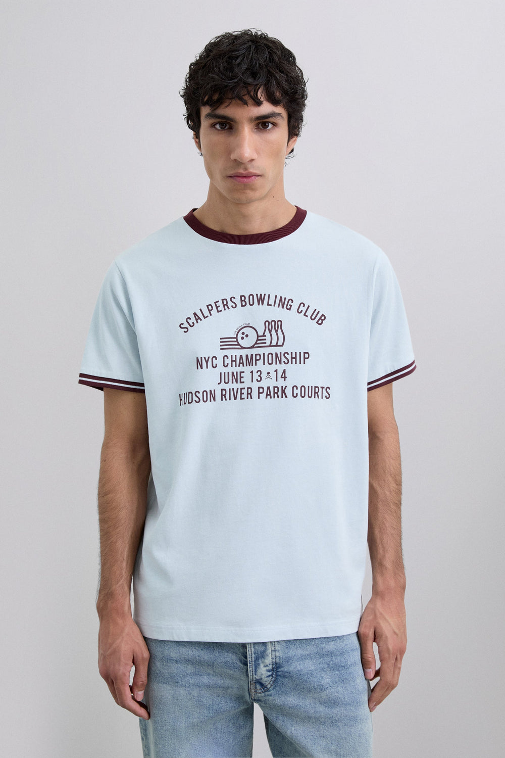 T-shirt made of 100% BCI cotton. Short sleeve. Front print. Regular fit. Contrast ribbed trim on collar and cuffs.