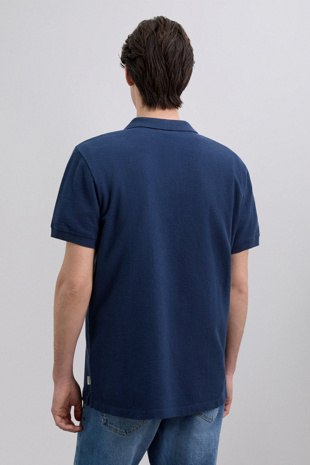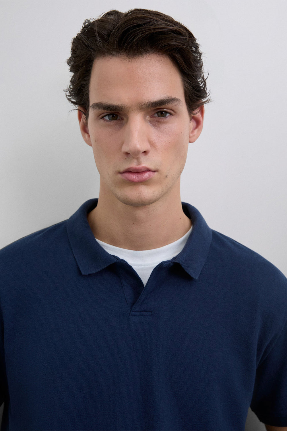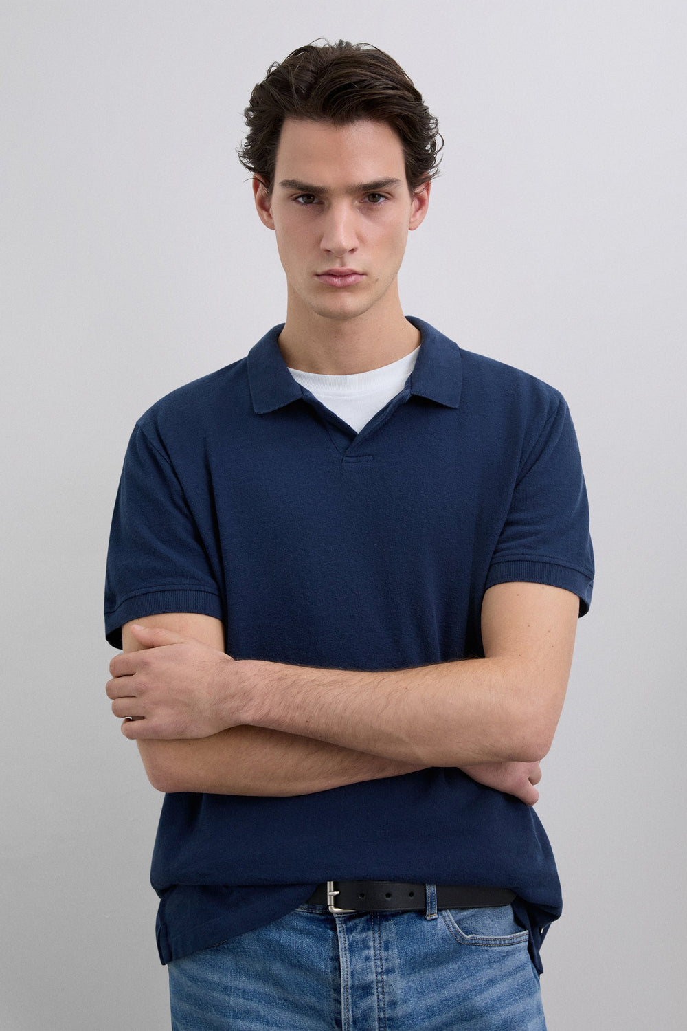 Short sleeve polo shirt in rustic knit. Regular fit. Ribbed open collar and cuffs.