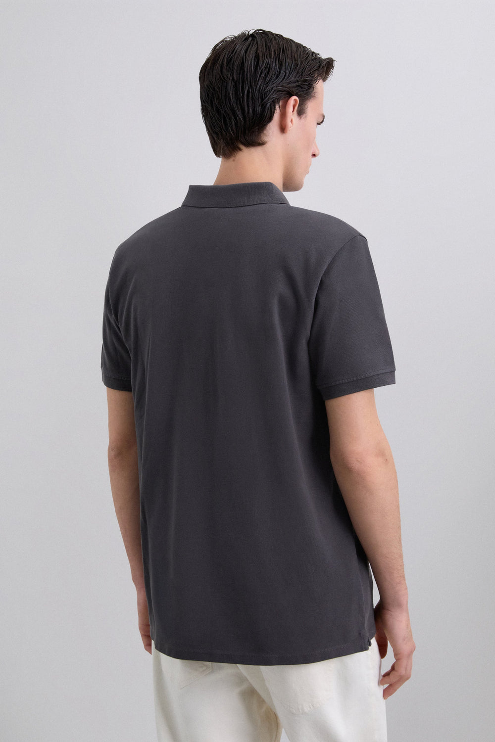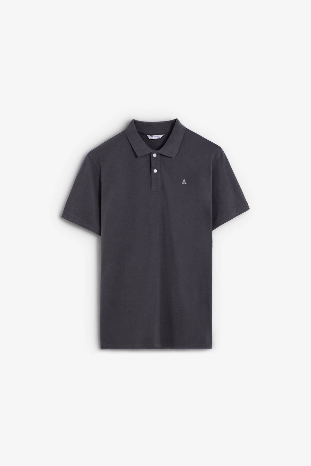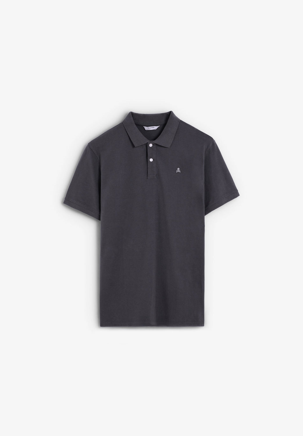 Pique polo shirt made of 100% organic cotton. Short sleeve. Regular fit. Two-button placket. Ribbed collar and cuffs. Contrast embroidered skull on the chest.