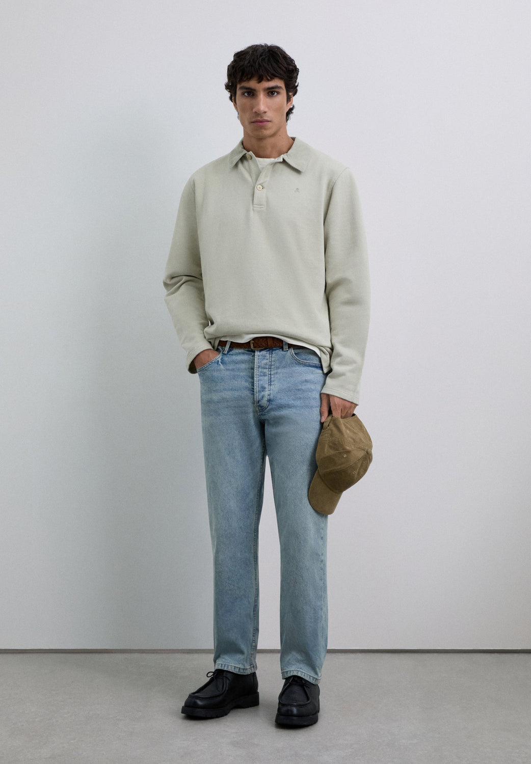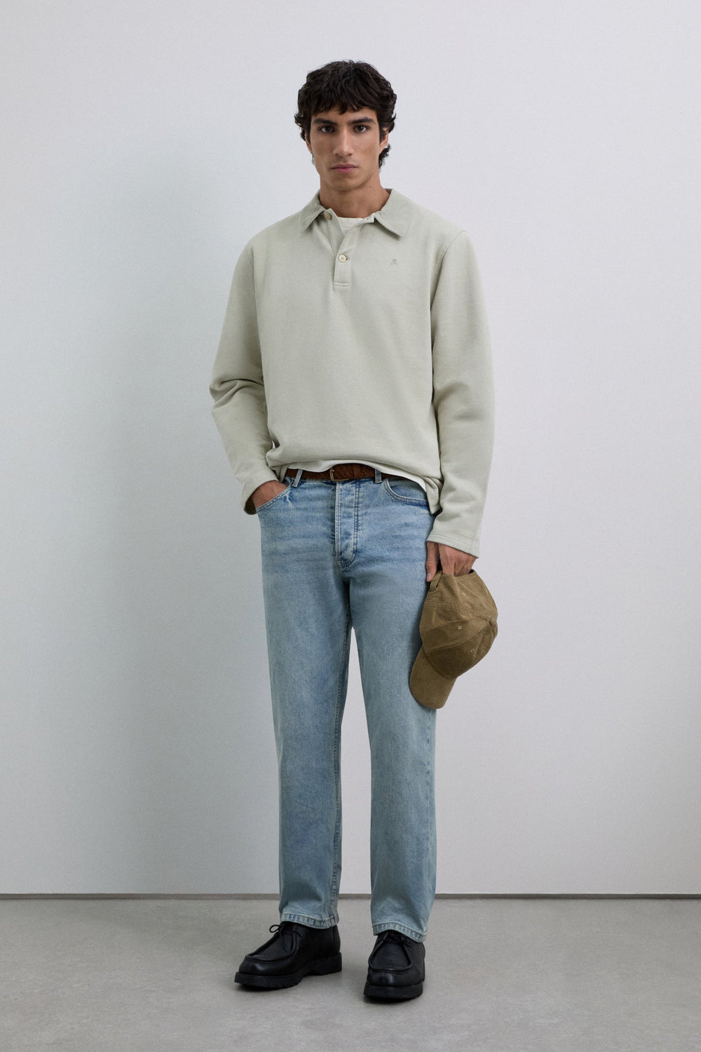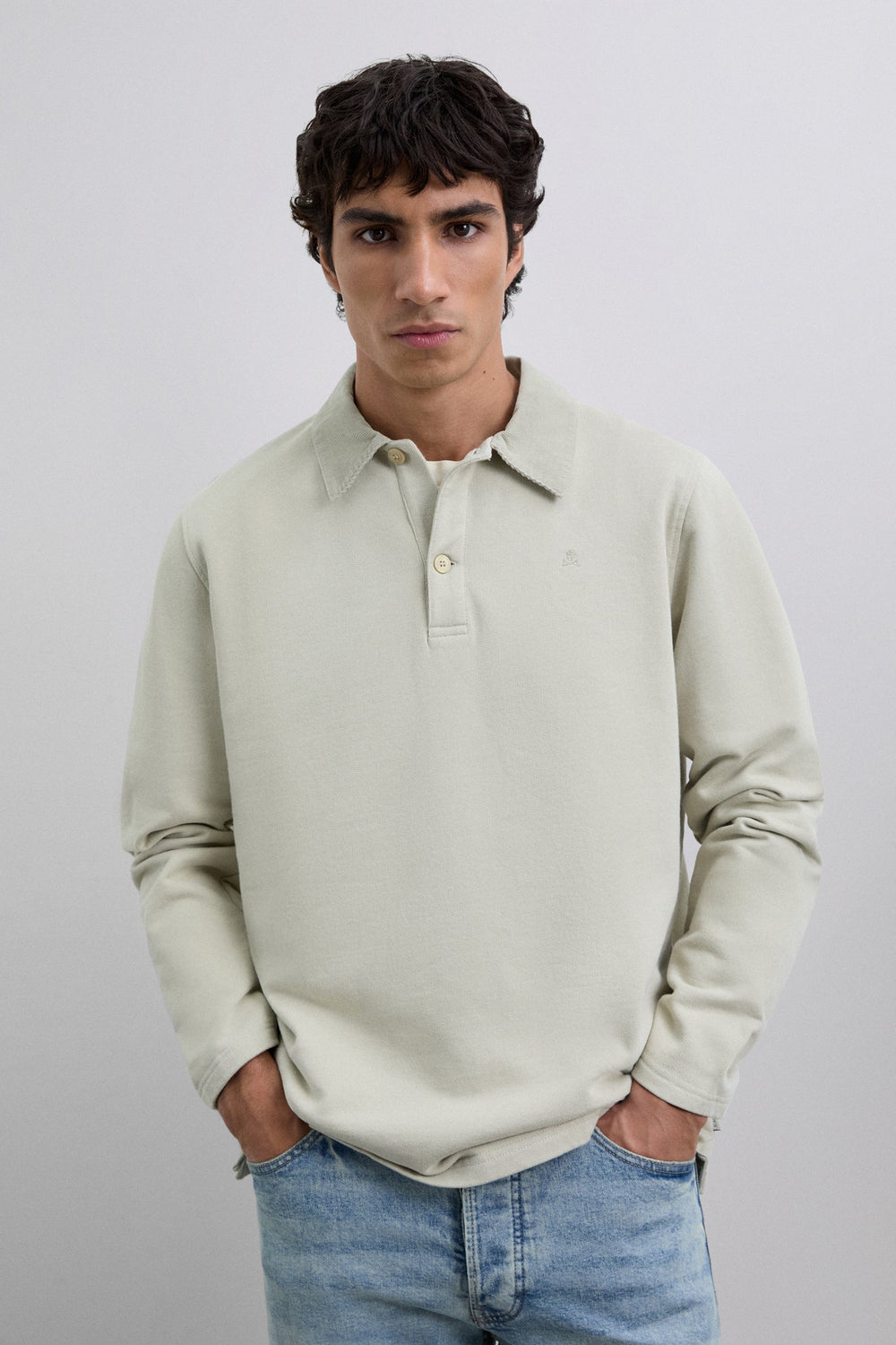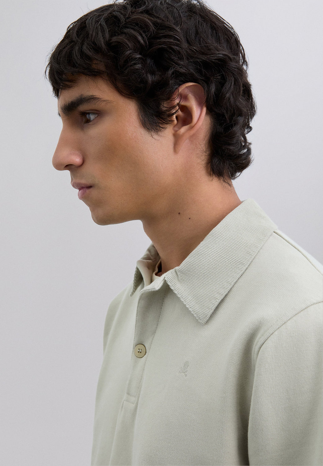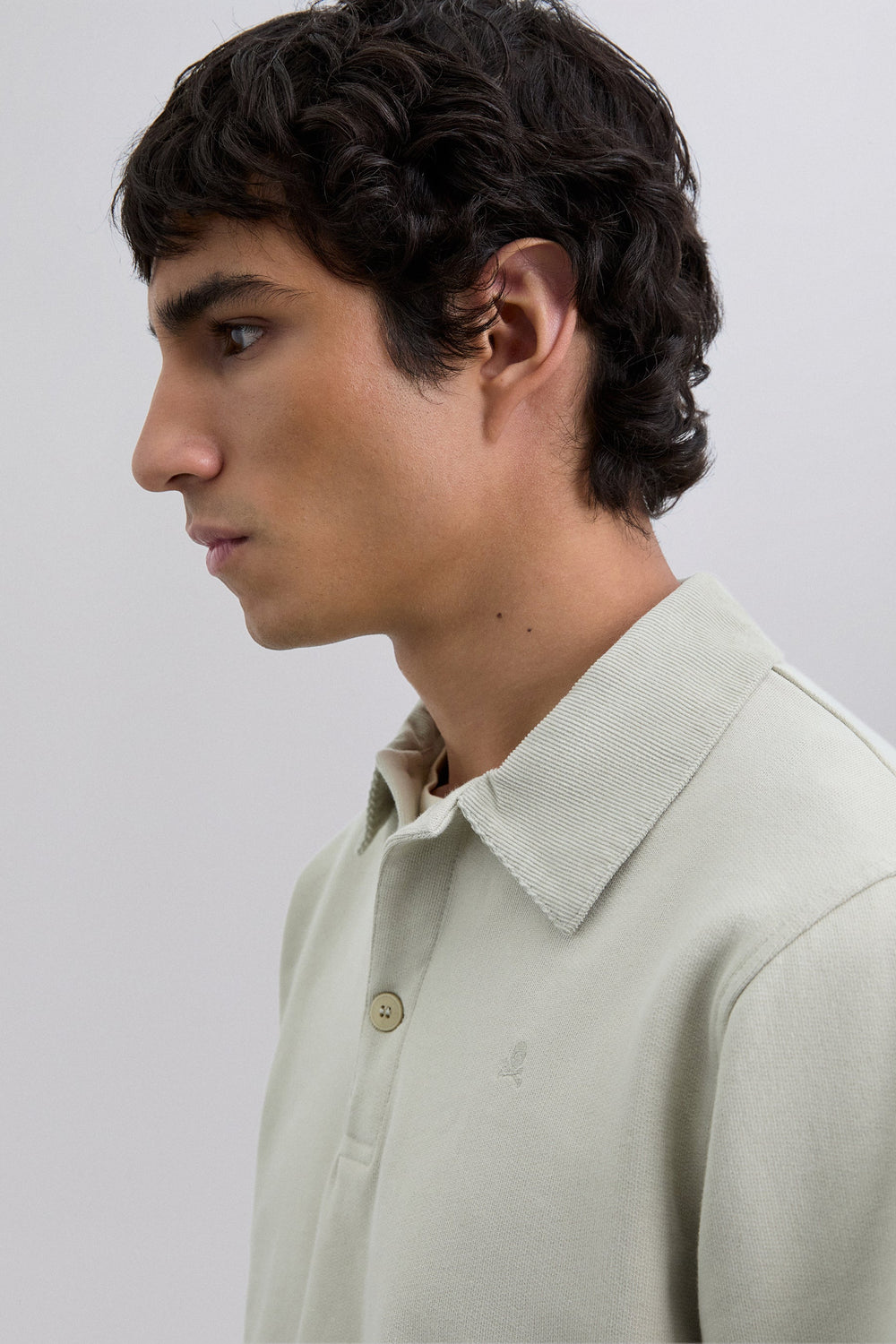 Polo shirt made of 100% BCI cotton. Contrast corduroy collar with button fastening. Long sleeves. Matching embroidered logo on the chest.