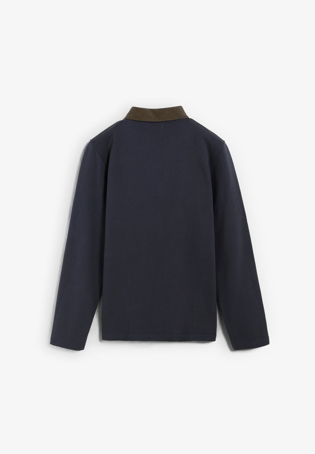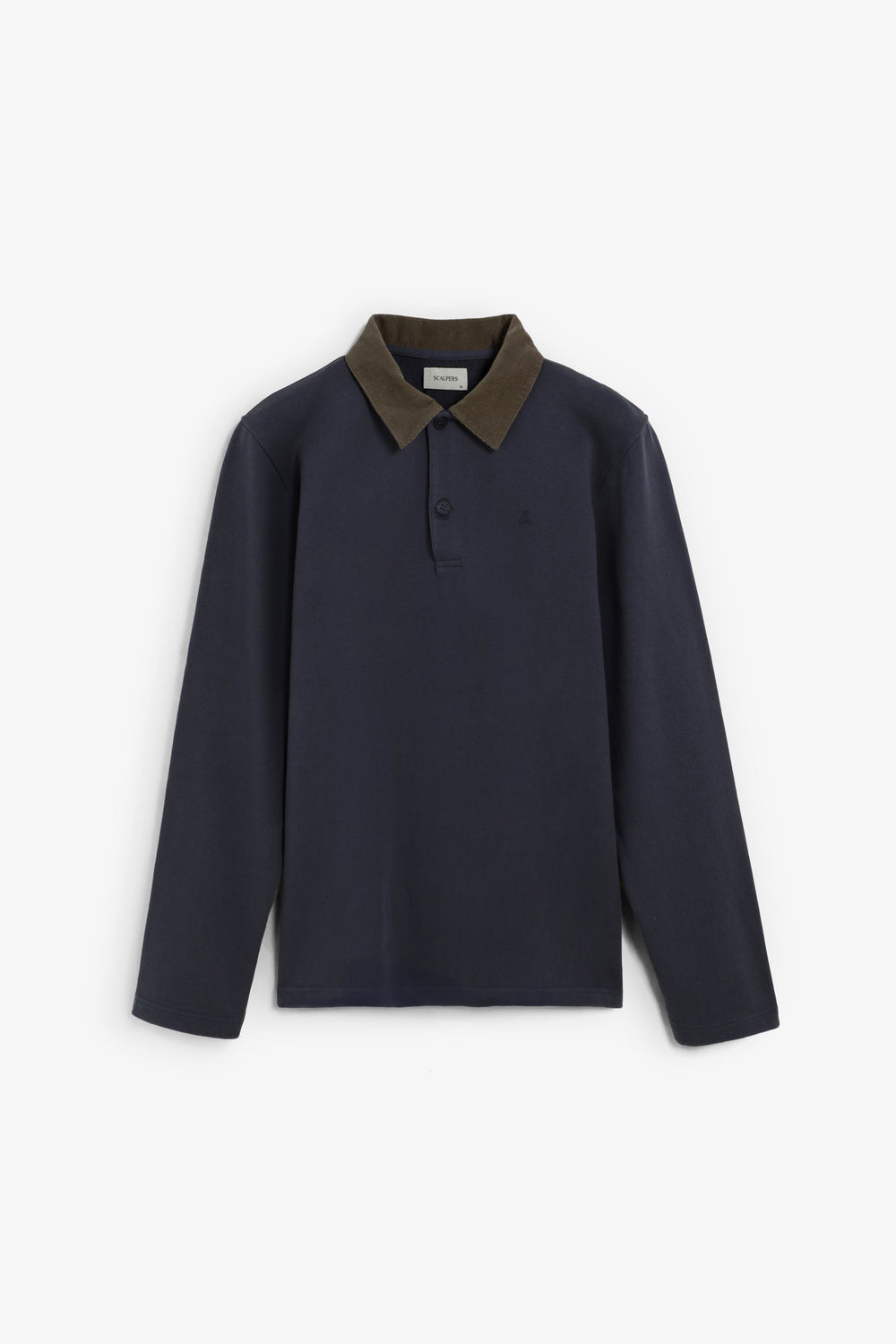 Polo shirt made of 100% BCI cotton. Contrast corduroy collar with button fastening. Long sleeves. Matching embroidered logo on the chest.