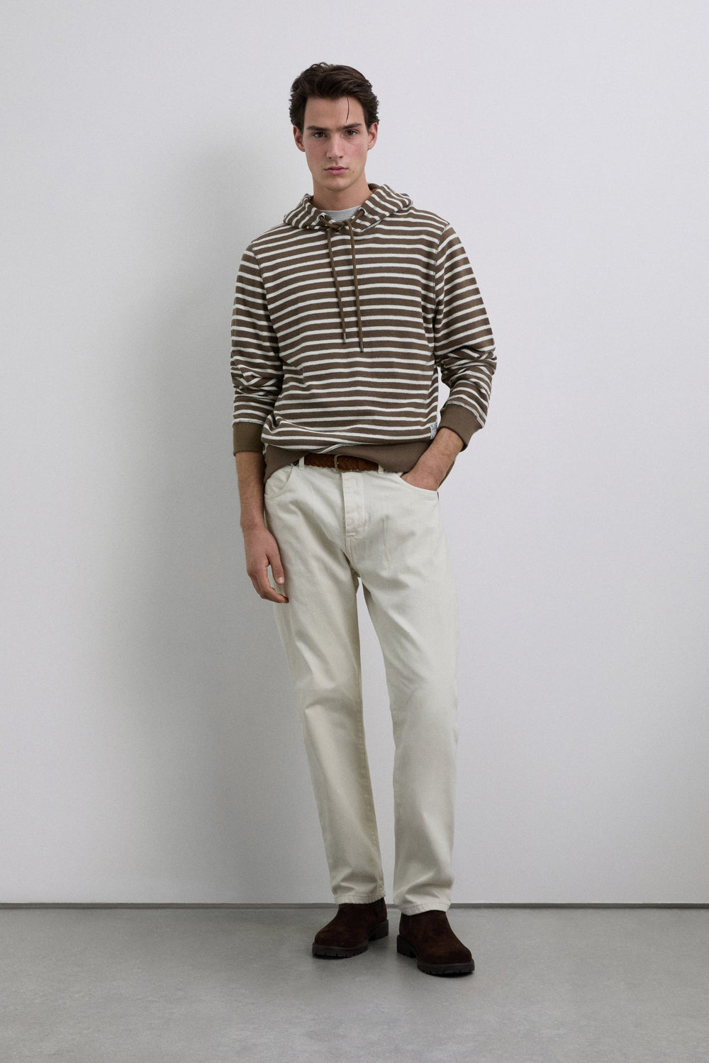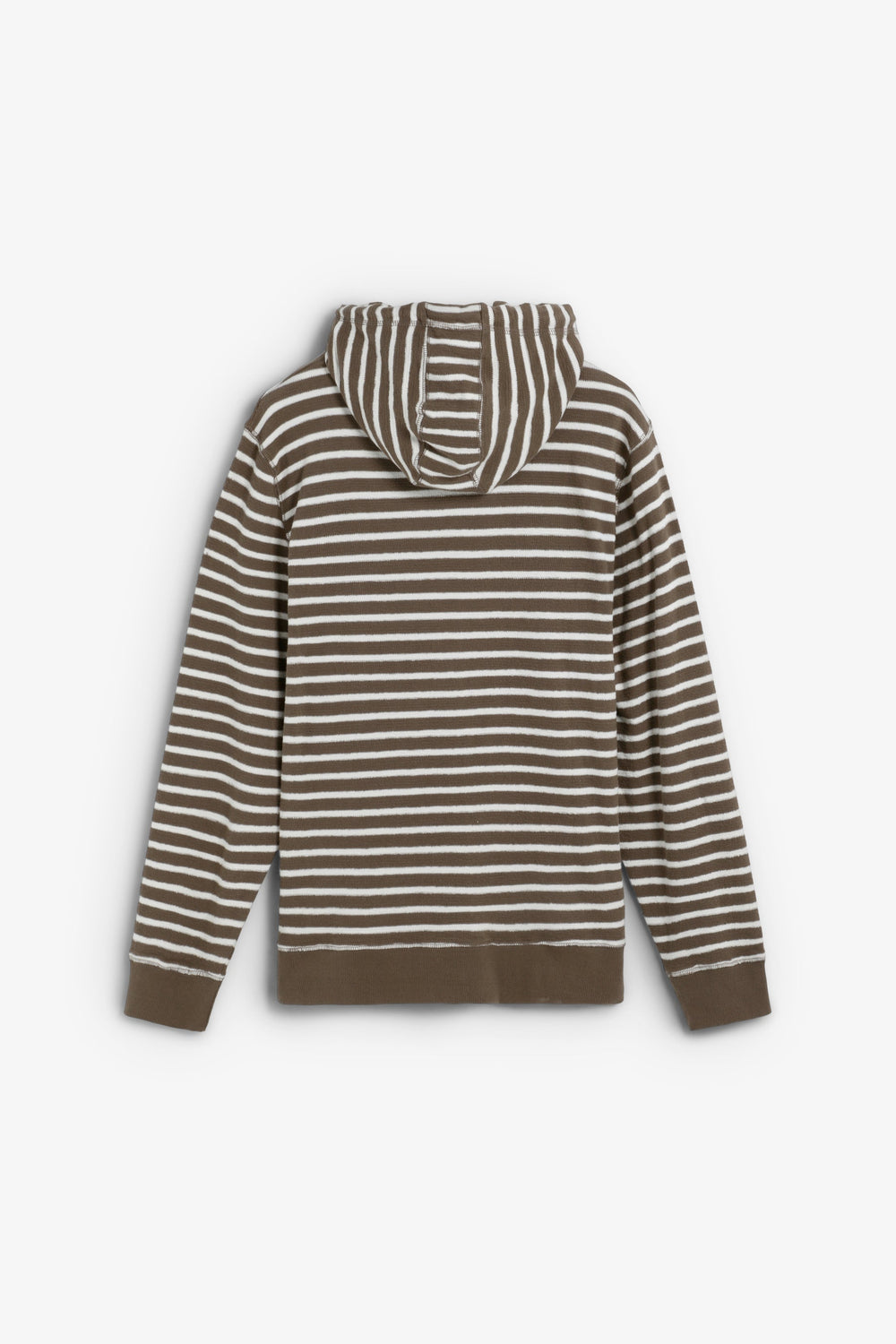 Sweatshirt made of 100% BCI cotton. Stripe print. Regular fit. Embroidered label on left side. Metal eyelets. Laces with metal tip. Ribbed cuffs and hem.