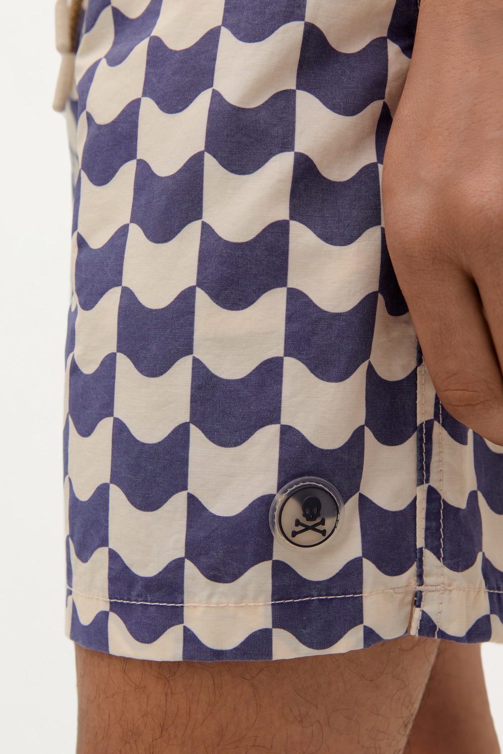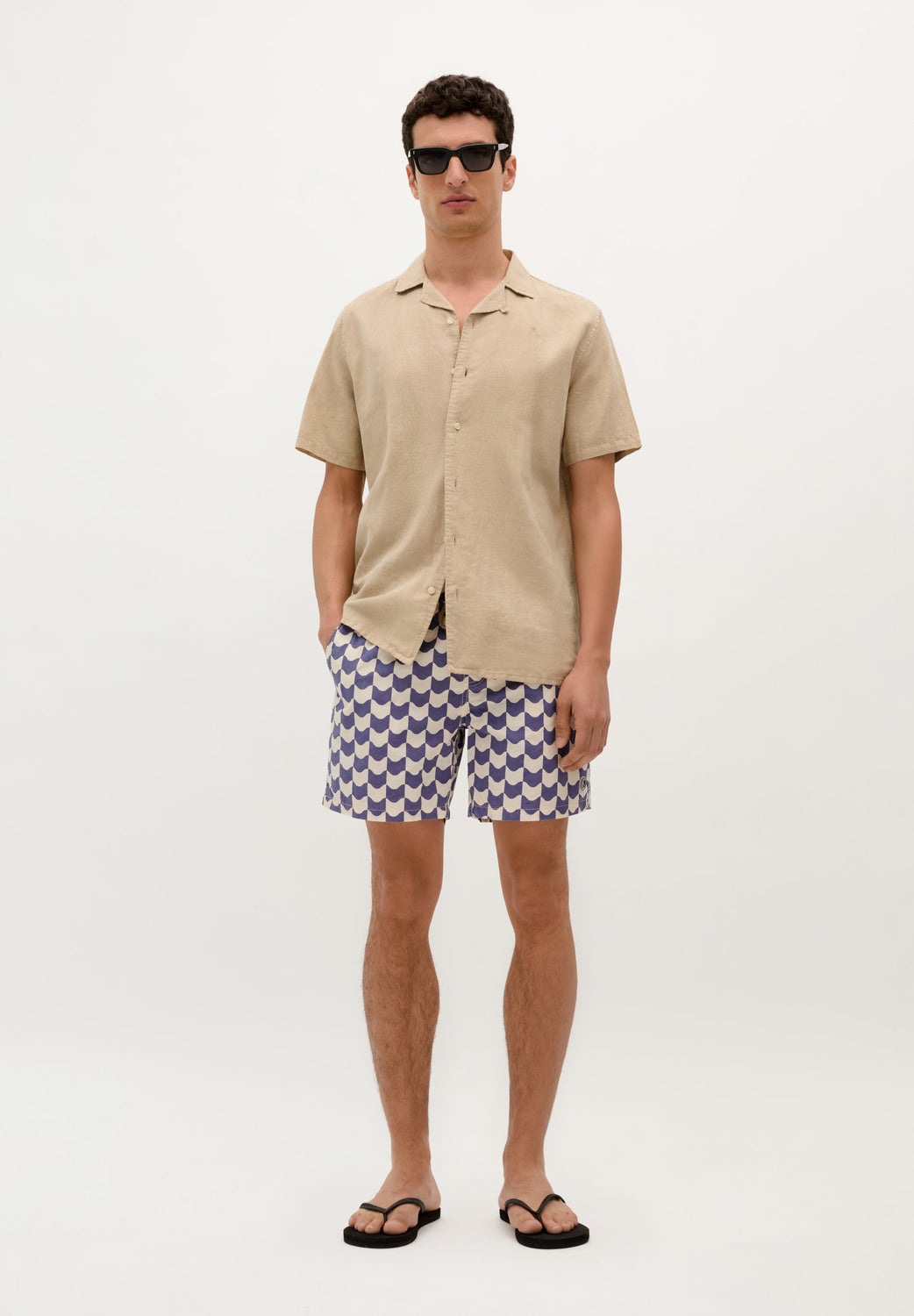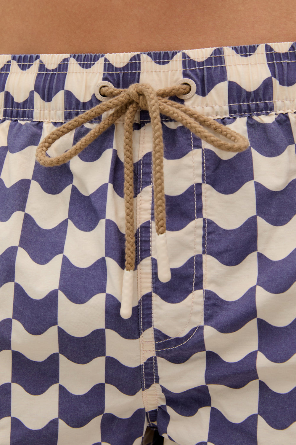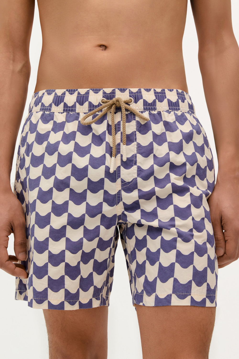 Swimming trunks made of technical fabric. Elasticated adjustable drawstring waistband. Side pockets and back patch pocket detail. Lined.