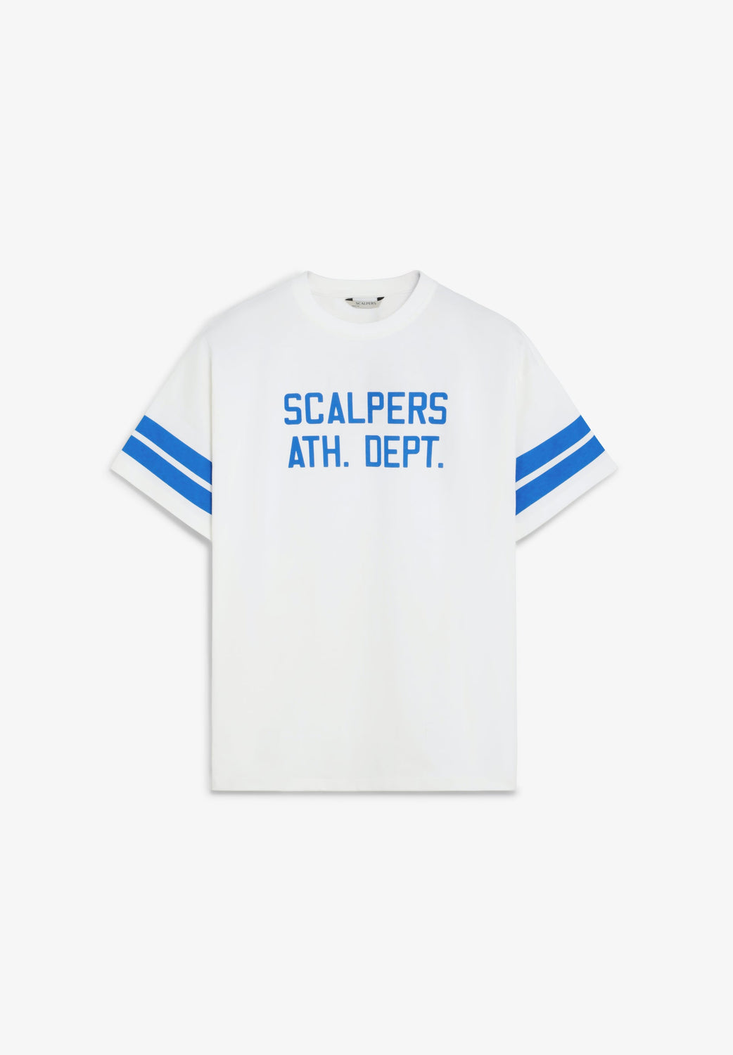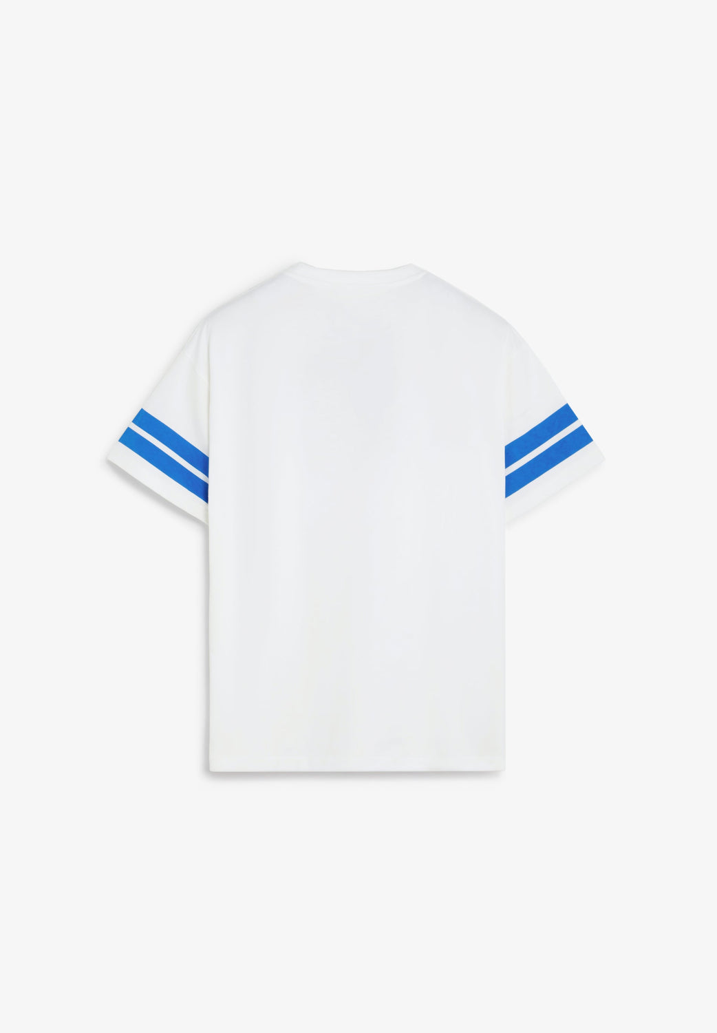 T-shirt made of 100% BCI cotton. Short sleeve. Ribbed round neck Boxy fit. Contrast printed graphic on the front and sleeves.
