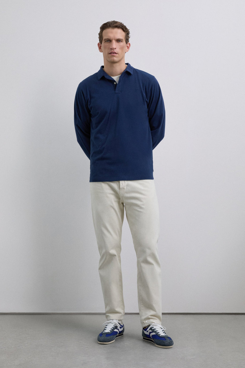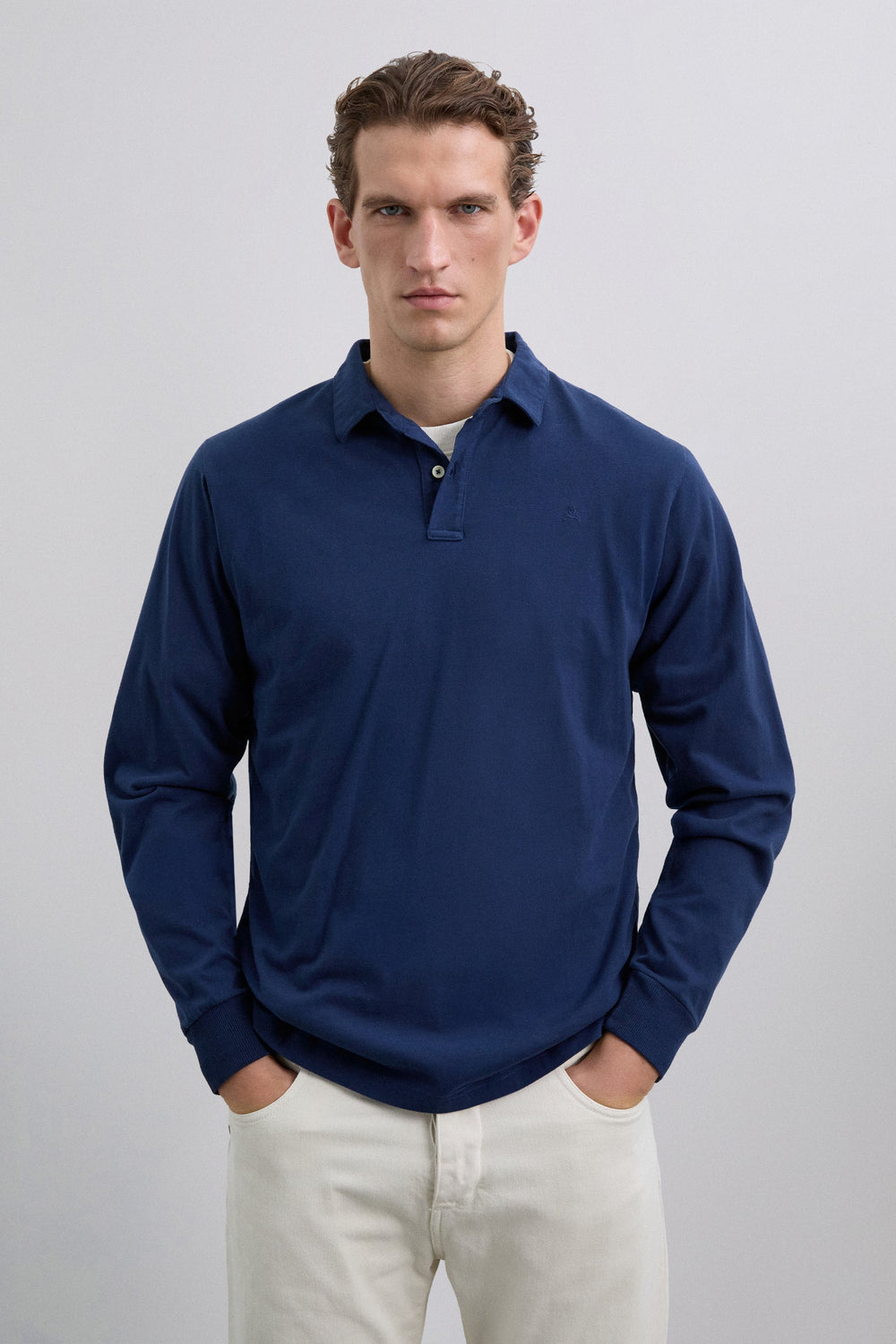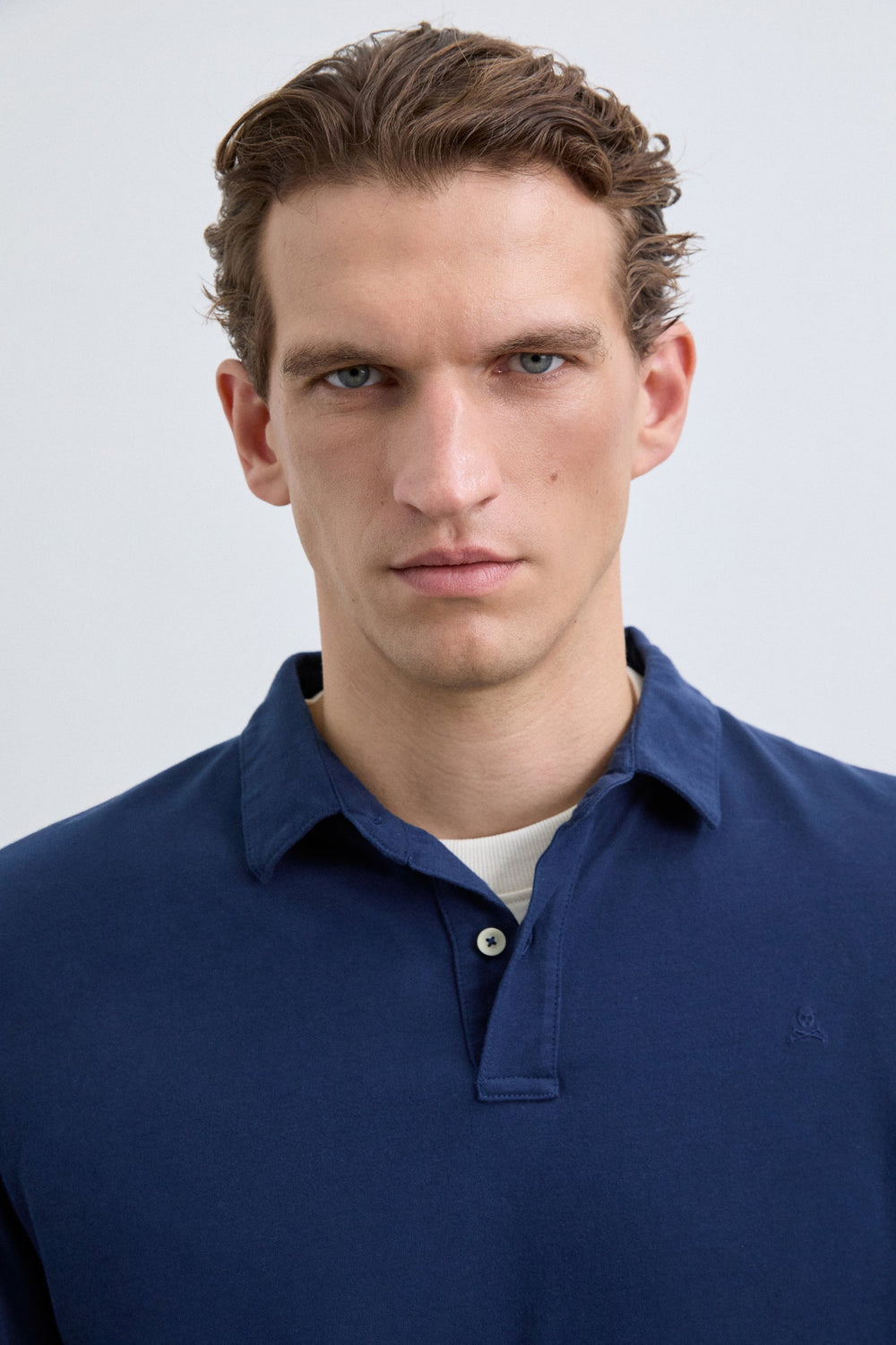 Long sleeve polo shirt made of 100% BCI cotton. Matching embroidered skull detail on the chest. Shirt collar. Front button fastening.