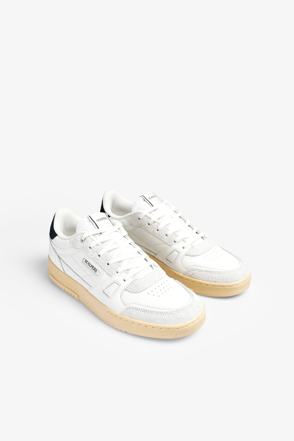 Leather sneakers. Contrast TPR sole. Contrast heel detail and side logo. Logo label detail on tongue.