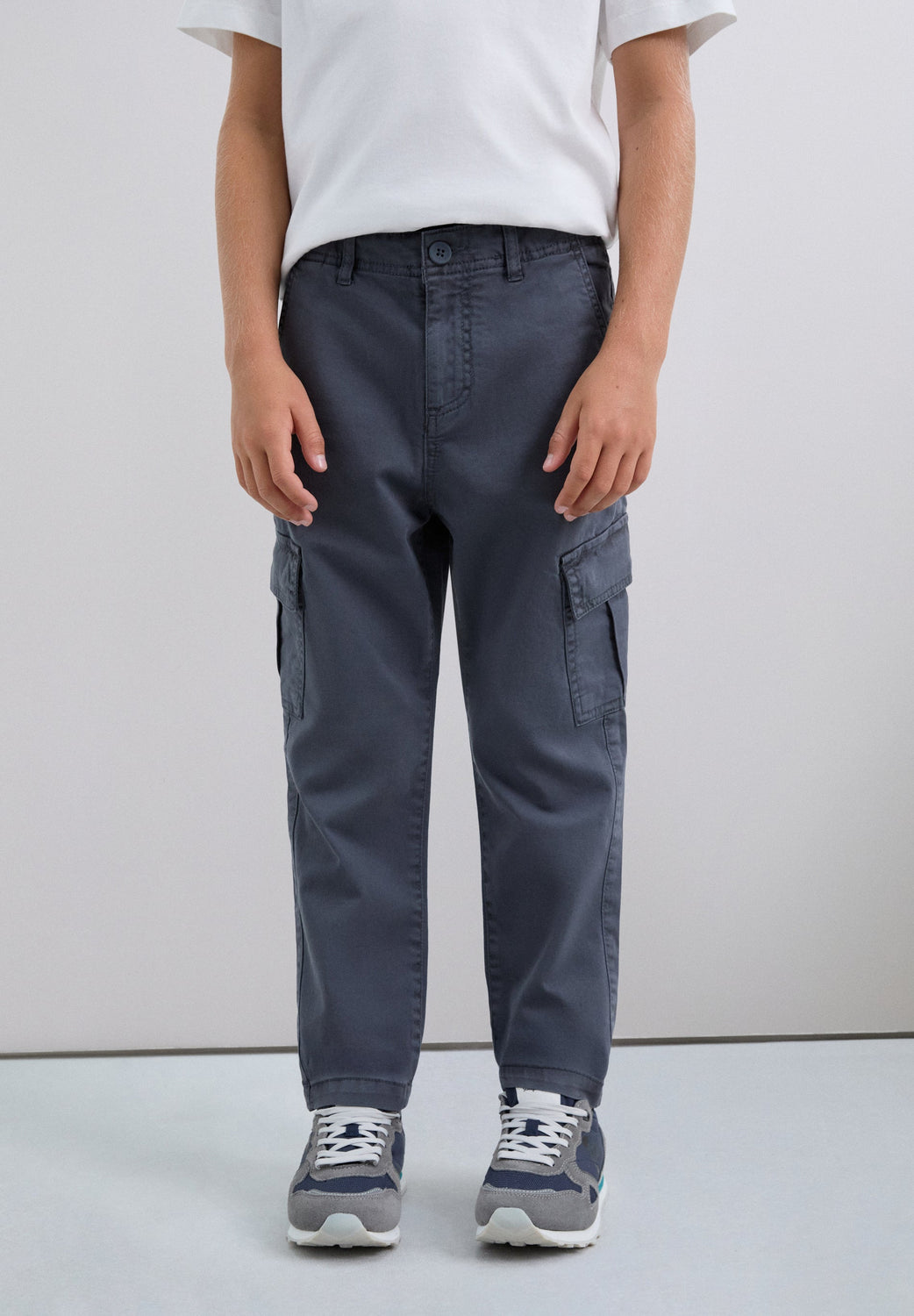 Cargo trousers made of slightly stretch BCI cotton. Regular fit, top button and zip fastening and side pockets. Belt loops at the waist and flap pockets on the leg.