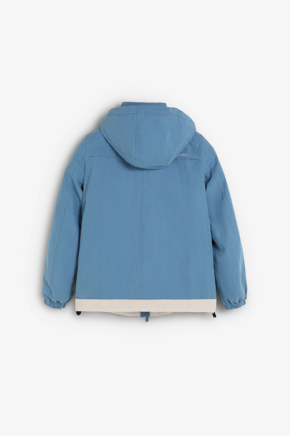 Jacket made of cotton and recycled fabric Regular fit, collar with adjustable hood and zip fastening. Long sleeves with cuffs and side logo patch. Front and chest pockets. Adjustable hem.