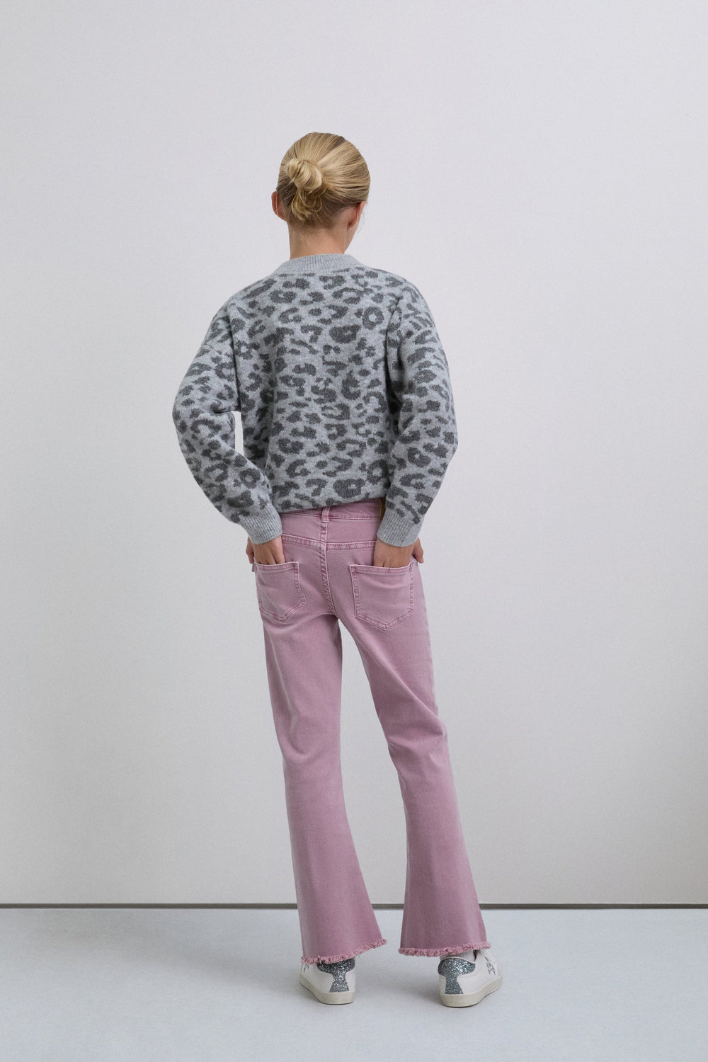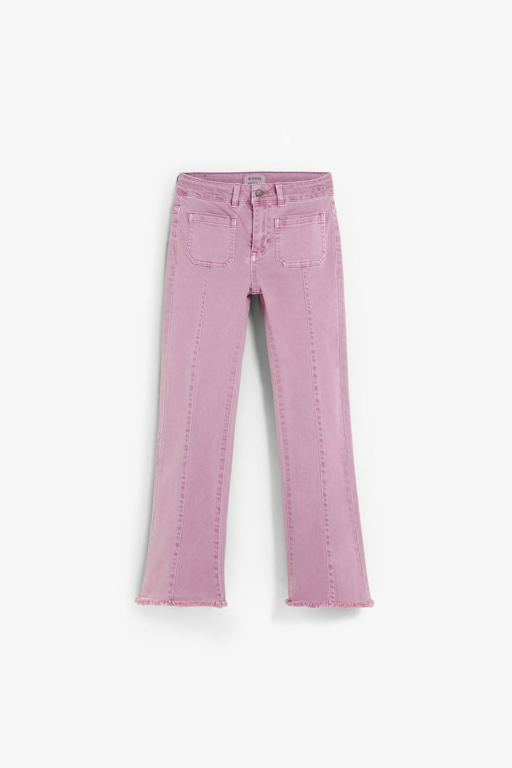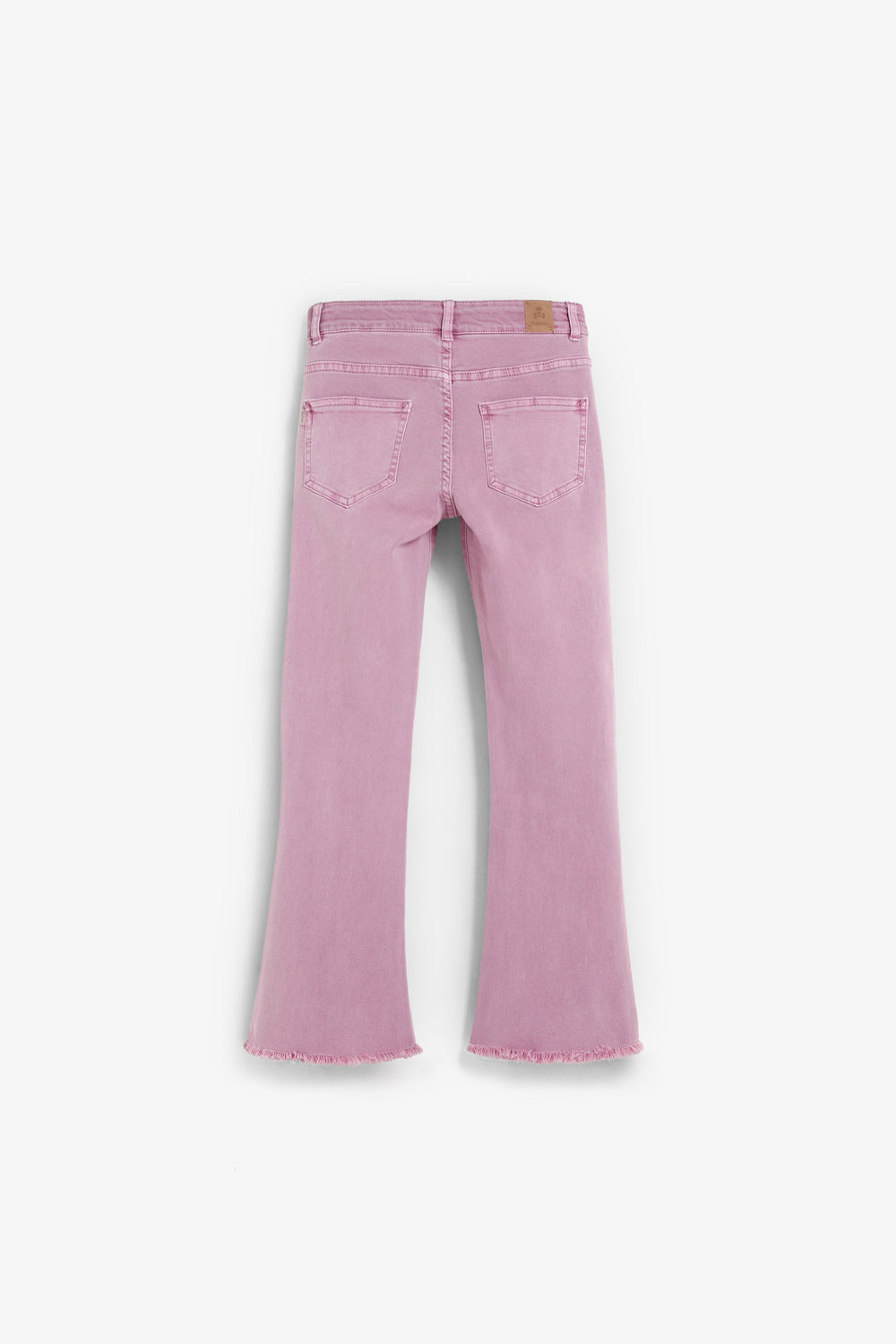 Flared trousers made of BCI cotton. Button and zip fastening. Belt loops at the waist. Front and back pockets. Seam detail on the front. Side slit and frayed hems.