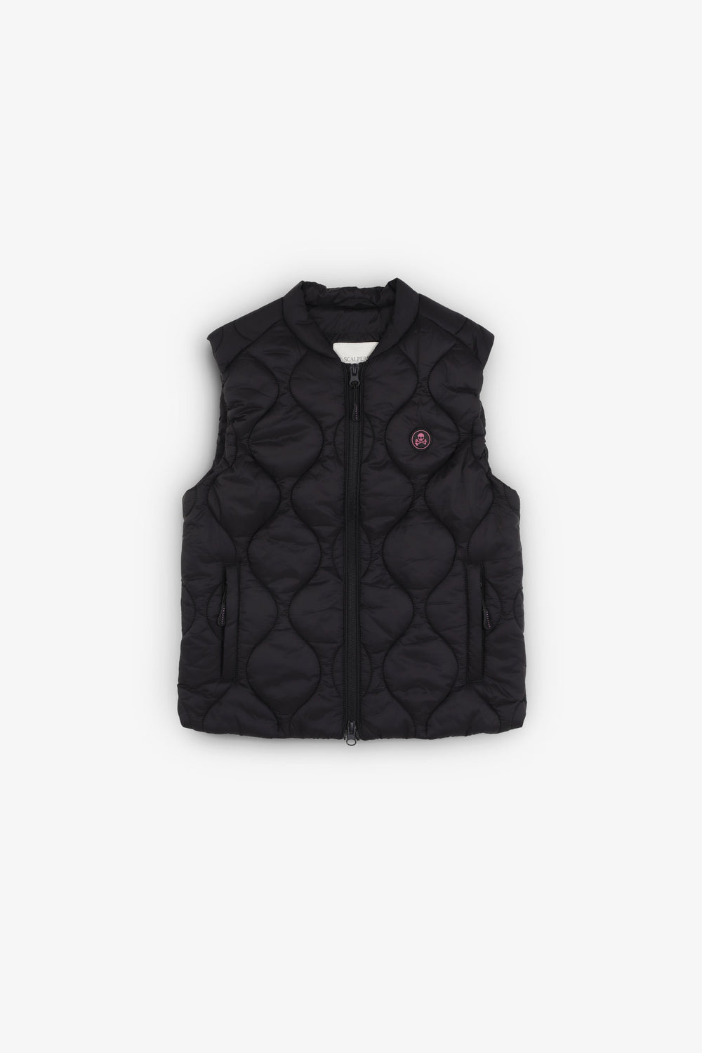 Puffer vest. Front double slider zip fastening. Two front pockets. Rubberised patch with logo on chest. Embroidered logo detail on the back.