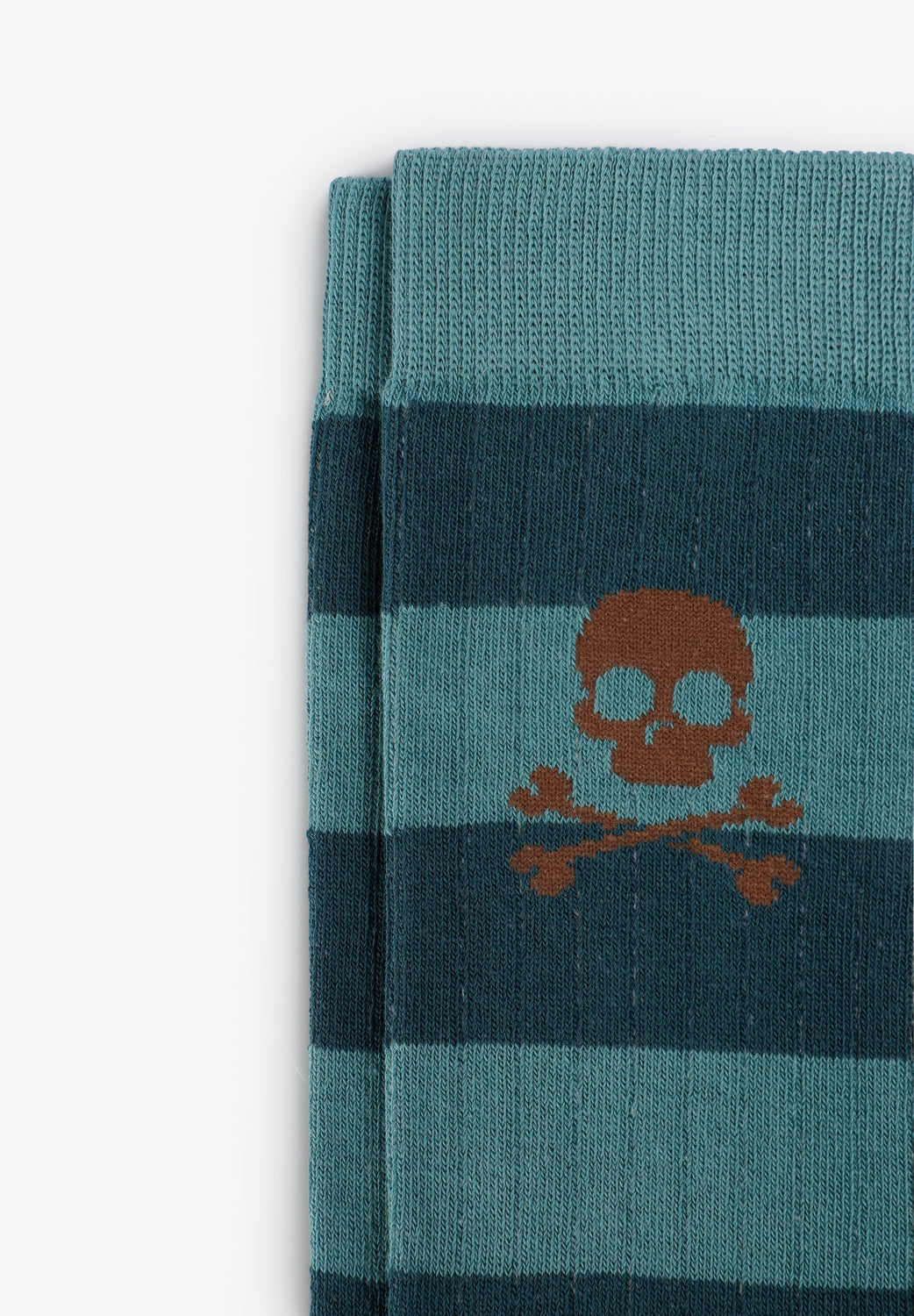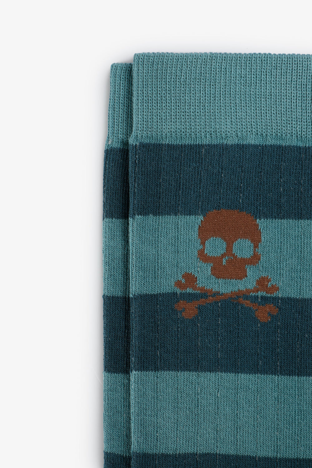 Socks made of an organic cotton blend. Stripe print. Contrast embroidered skull detail. Contrast logo detail on the bottom.