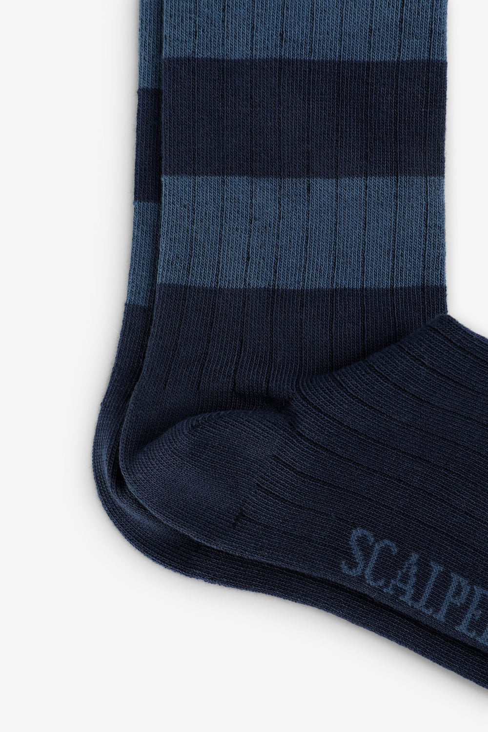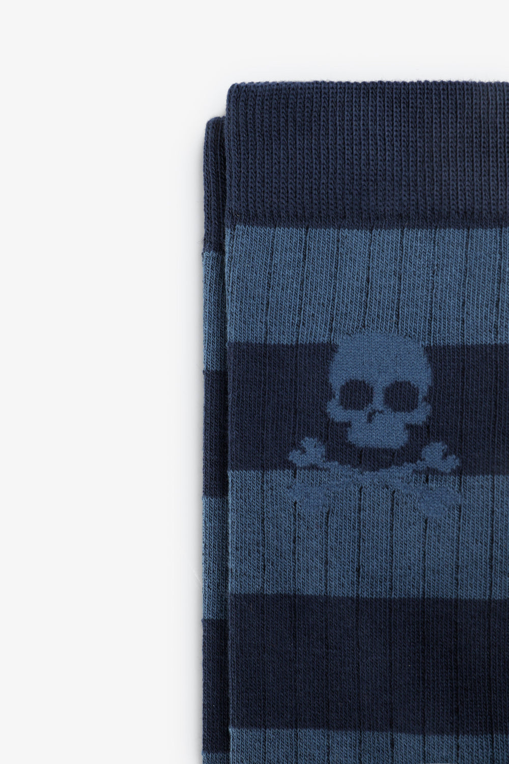 Socks made of an organic cotton blend. Stripe print. Contrast embroidered skull detail. Contrast logo detail on the bottom.