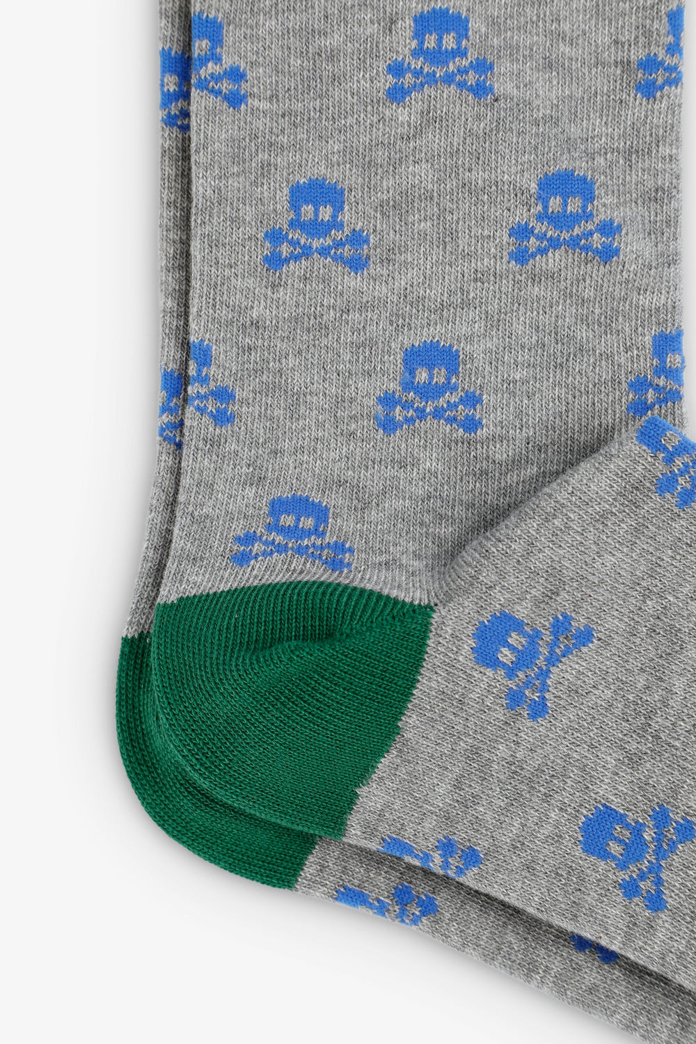 Long socks in a cotton blend. Skull print. Contrast heel and toe. Contrast logo detail.