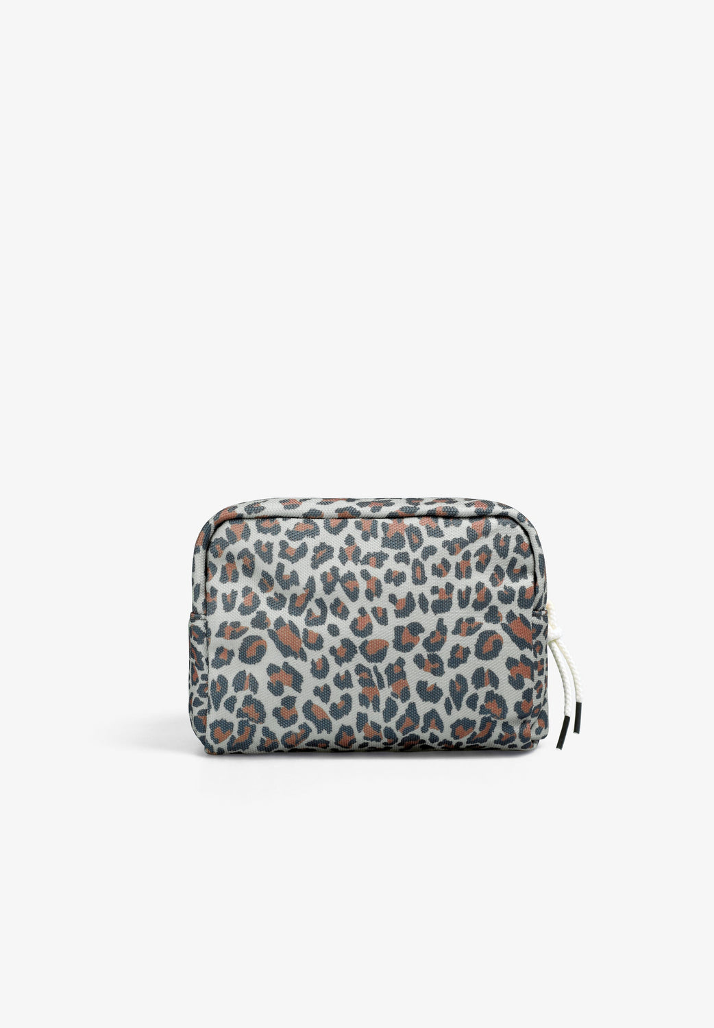Toiletry bag with embroidered label with logo and skull. Animal print. Zip fastening