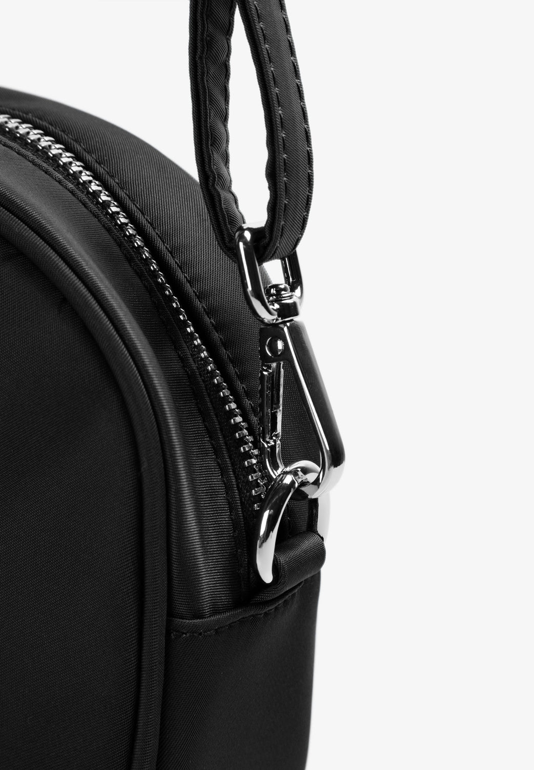 Bag made of 100% nylon with cotton lining. Adjustable and detachable shoulder strap. Inner pockets. Embroidered monogram label detail on front. Zip closure. Detachable charm detail on closure.
