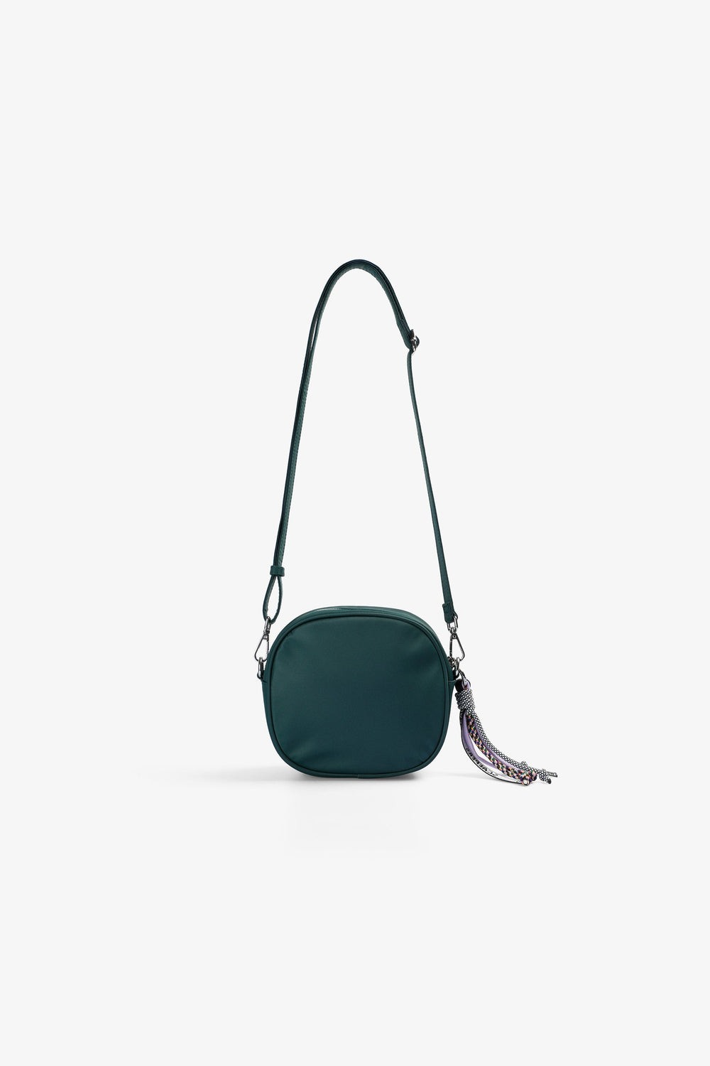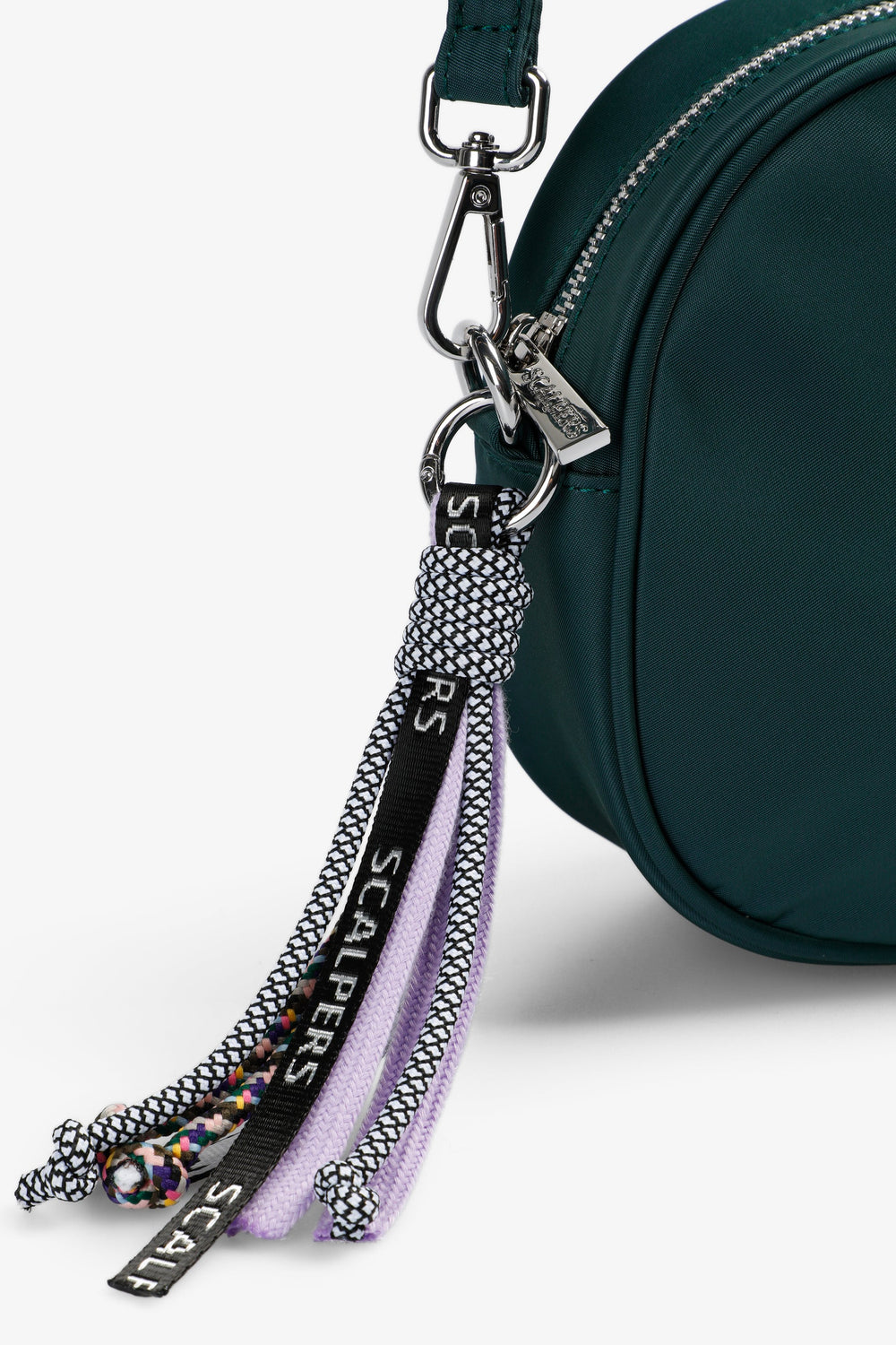 Bag made of 100% nylon with cotton lining. Adjustable and detachable shoulder strap. Inner pockets. Embroidered monogram label detail on front. Zip closure. Detachable charm detail on closure.