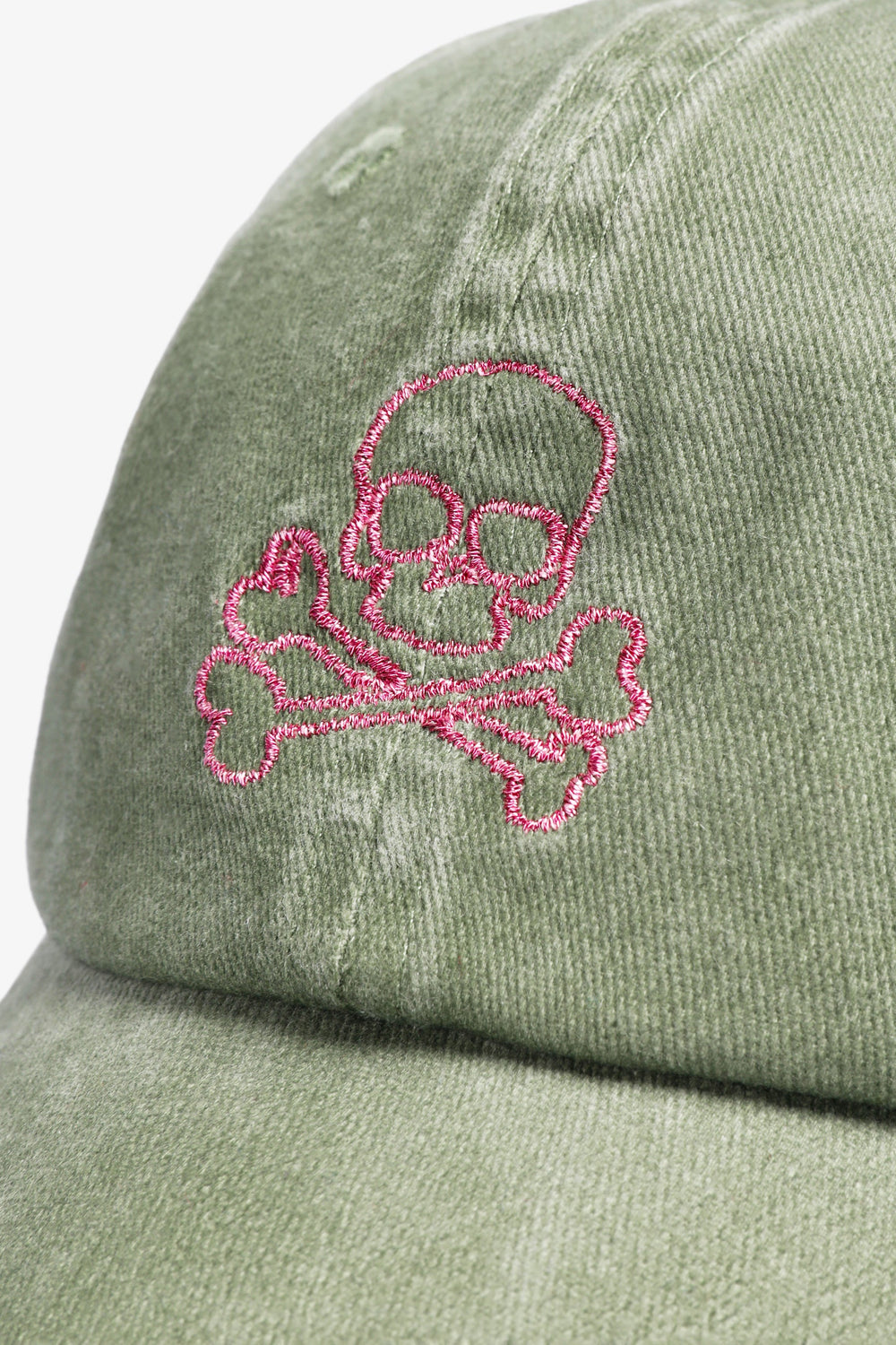 Cap made of 100% cotton. Contrast embroidered skull on front. Adjustable fastening. Logo label detail.