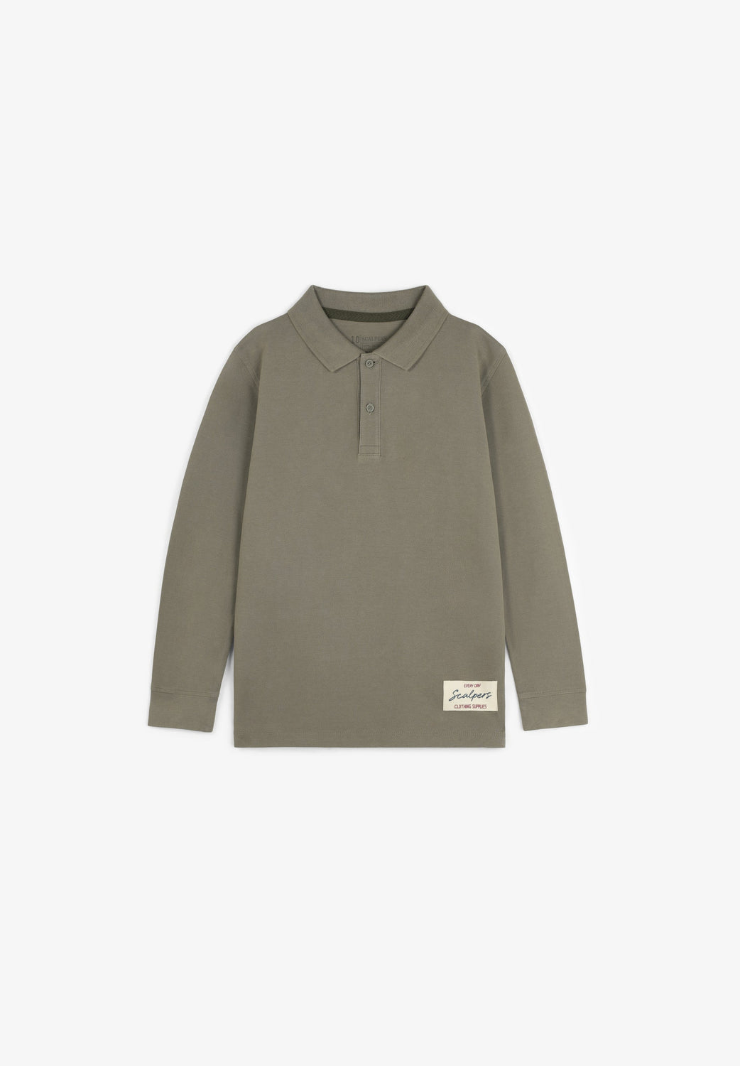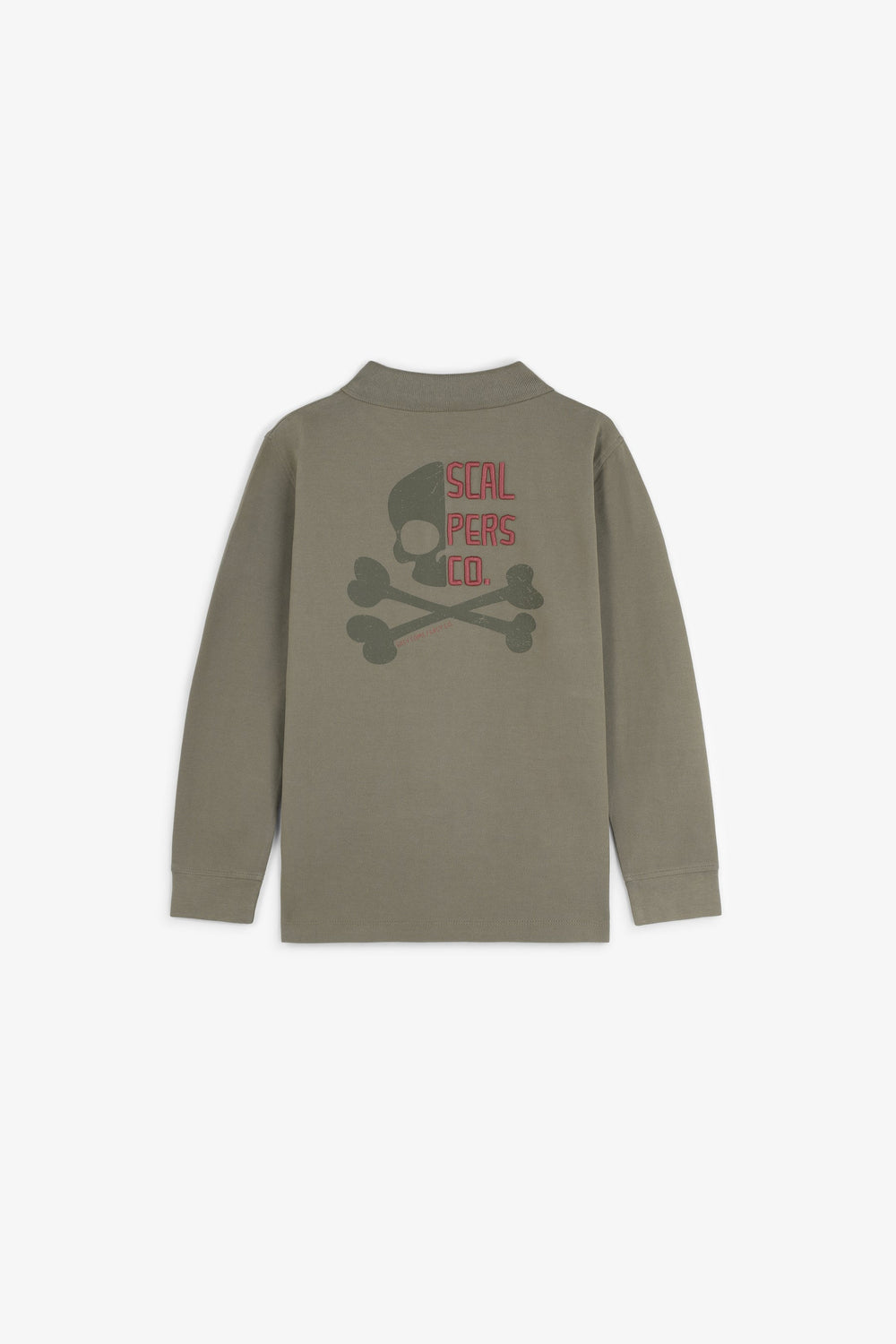 Polo shirt made of 100% BCI cotton. Regular Fit. Long sleeves. Classic collar with buttons. Embroidered logo and skull print on back. Embroidered patch detail on the lower front.