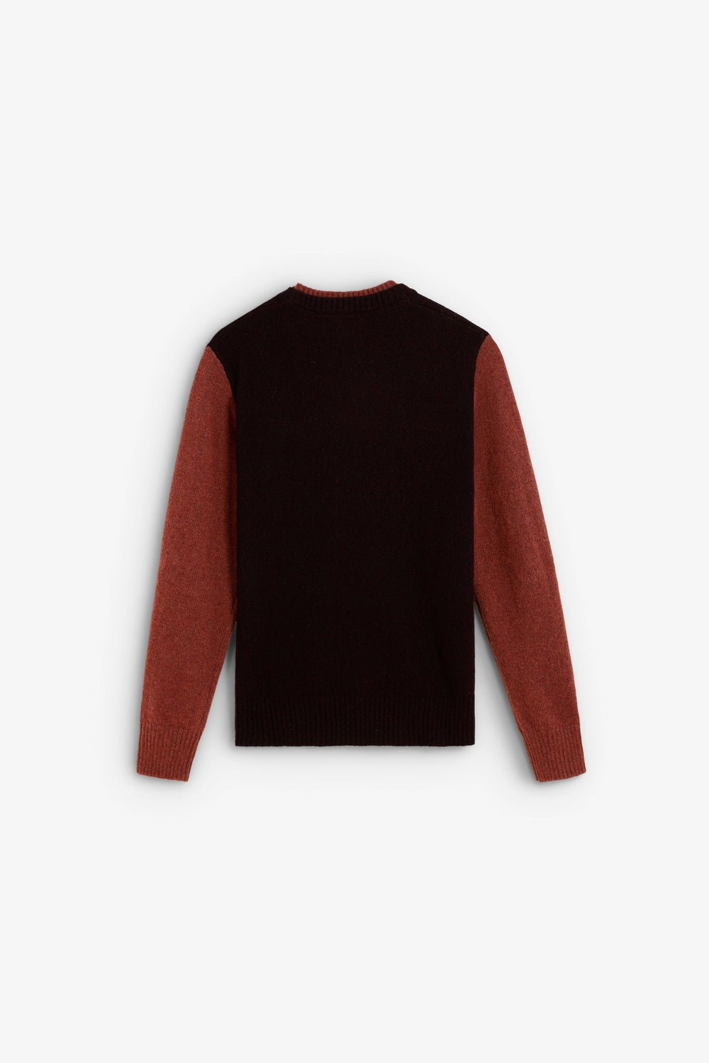 Knit sweater. Round neck and contrasting long sleeves. Contrast embroidered logo detail on the chest.