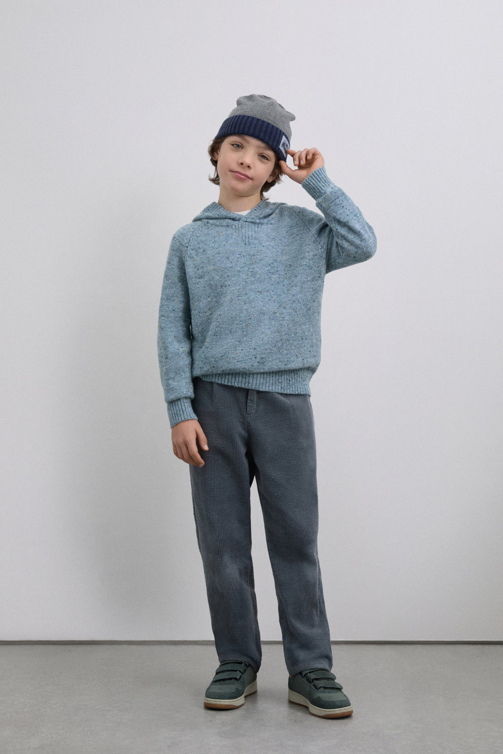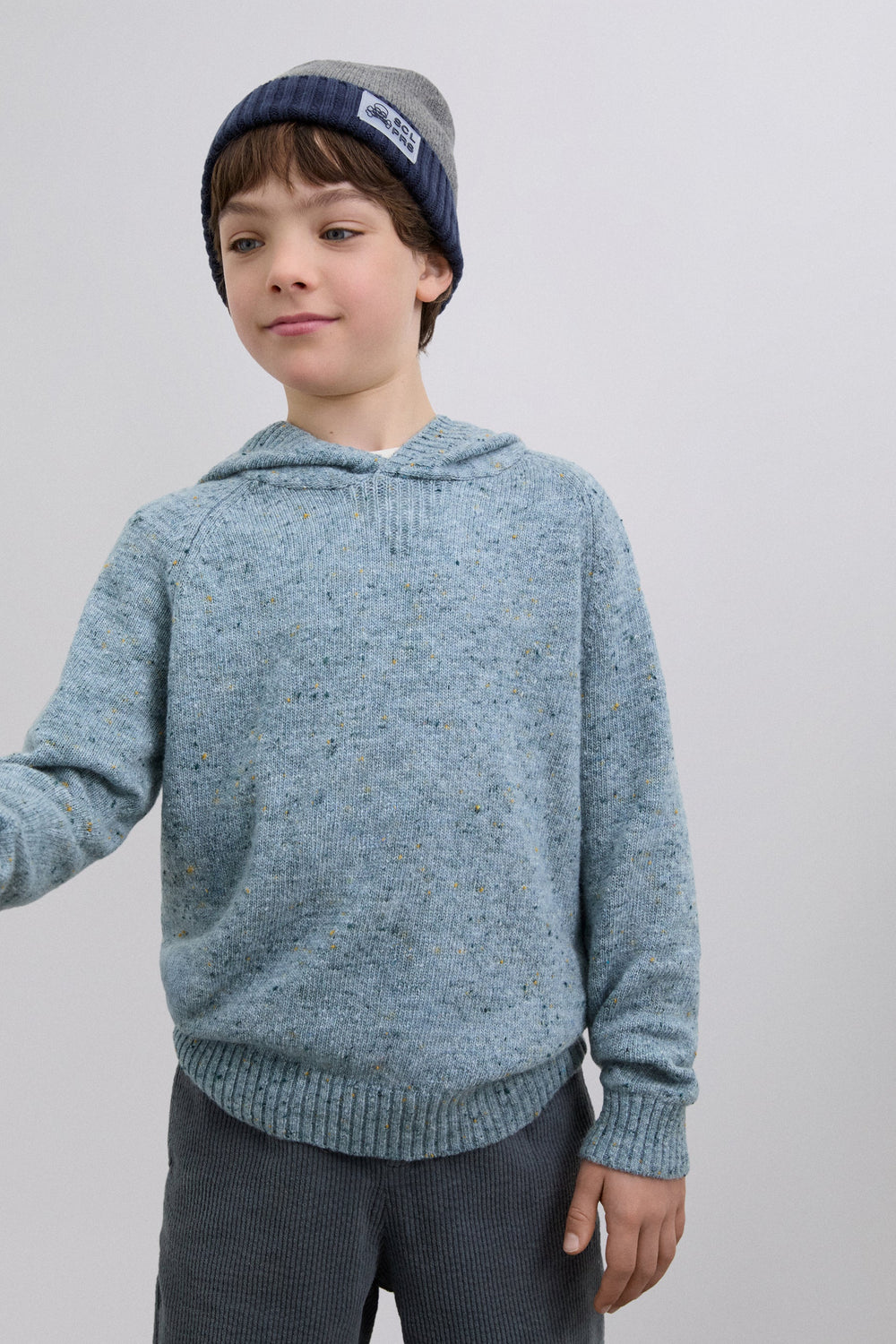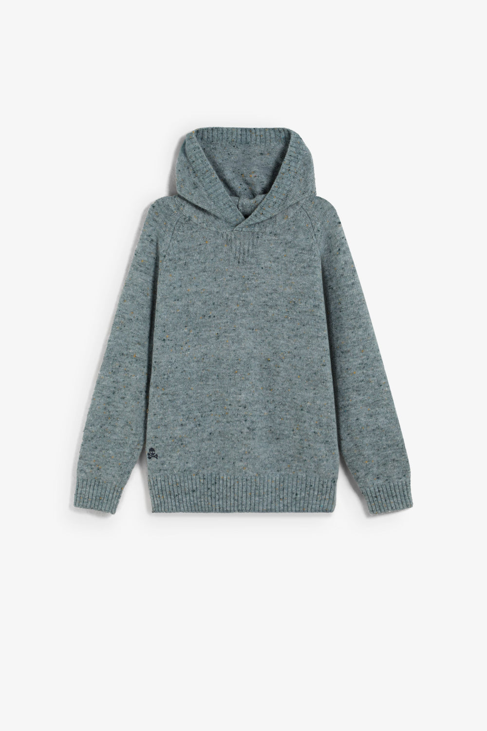 Knit sweater made of a wool blend. Long sleeves. Contrast embroidered skull on the hem.