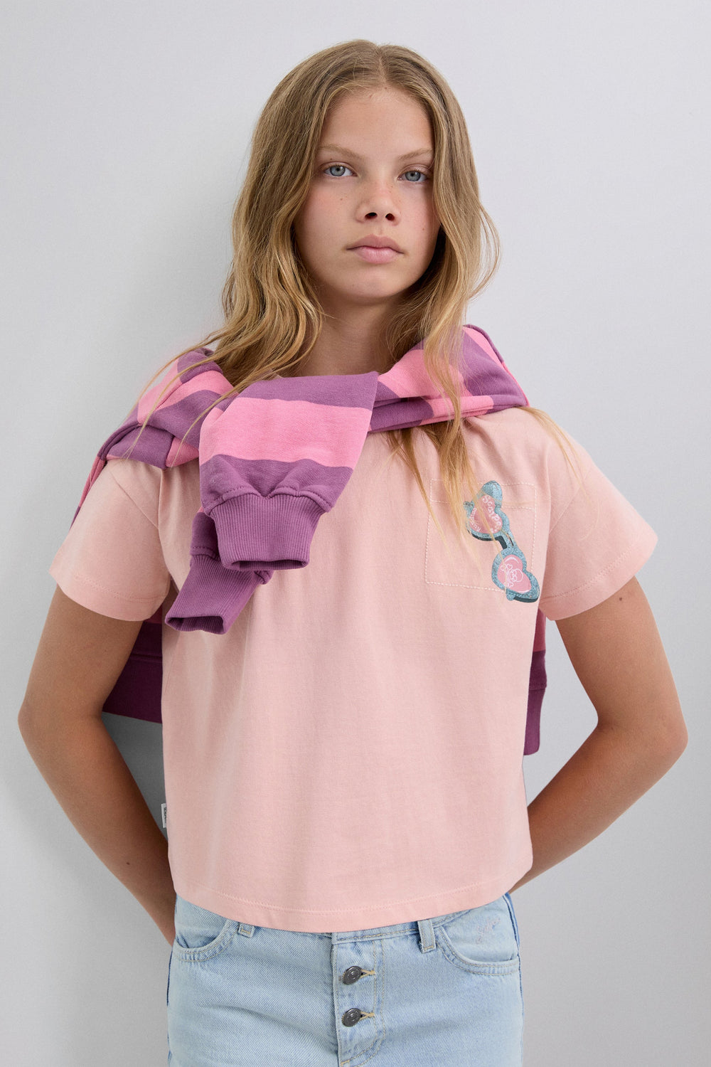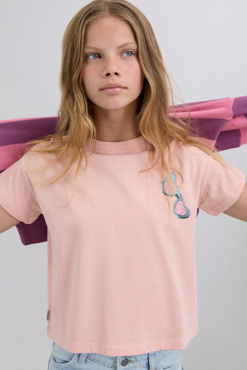 Short sleeve T-shirt made of 100% BCI cotton with round neck. Chest pocket detail and front and back print.