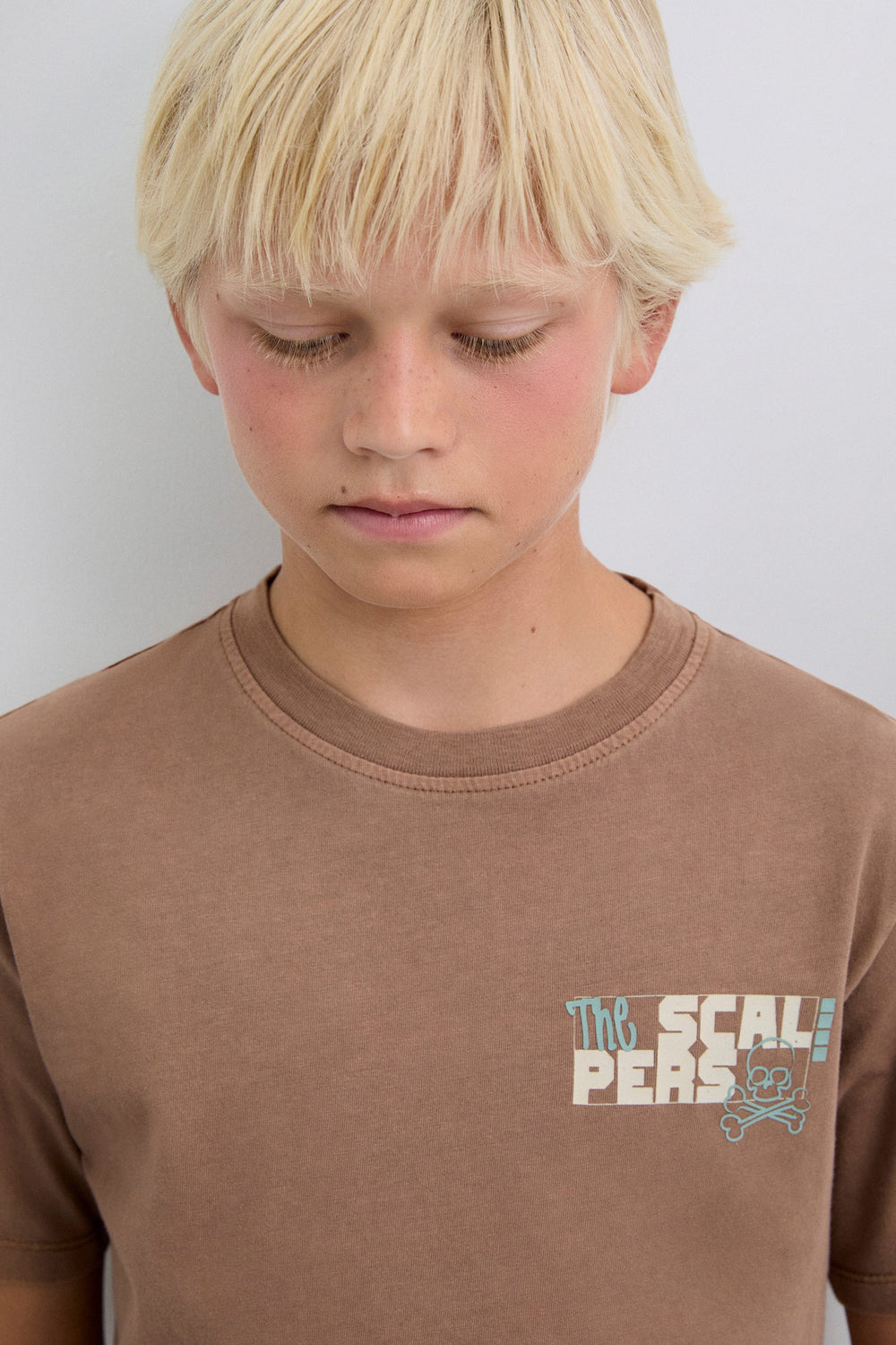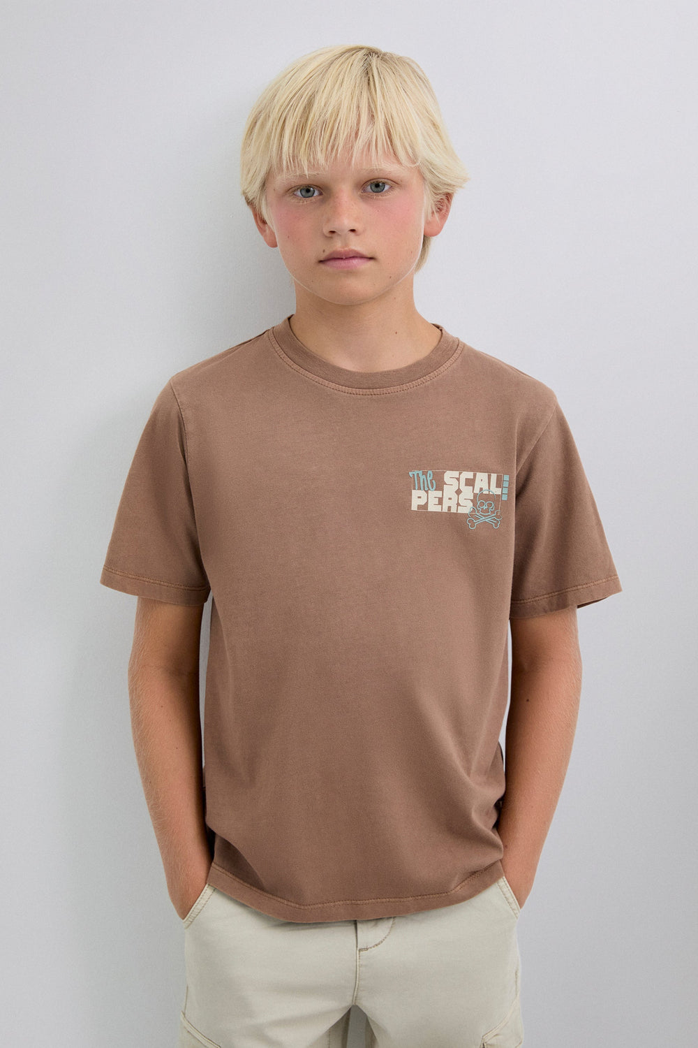 T-shirt made of 100% BCI cotton. Regular fit, short sleeves and round neck. Front and back print with logo.