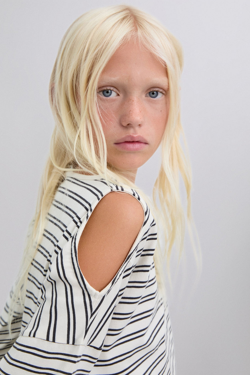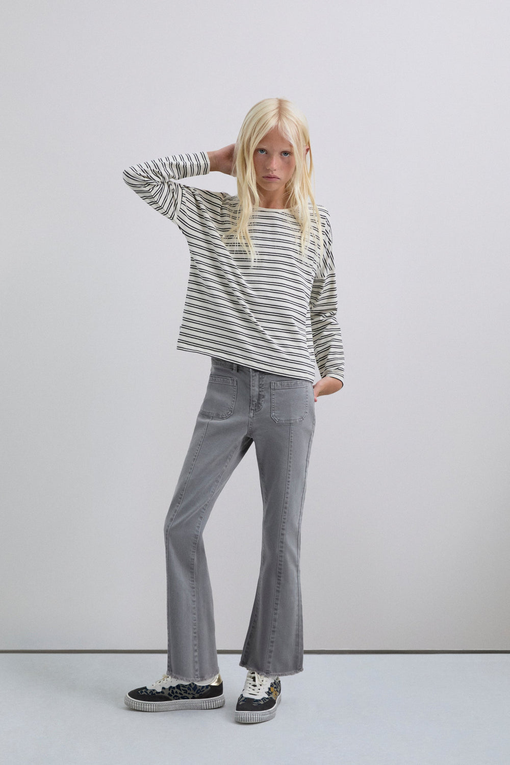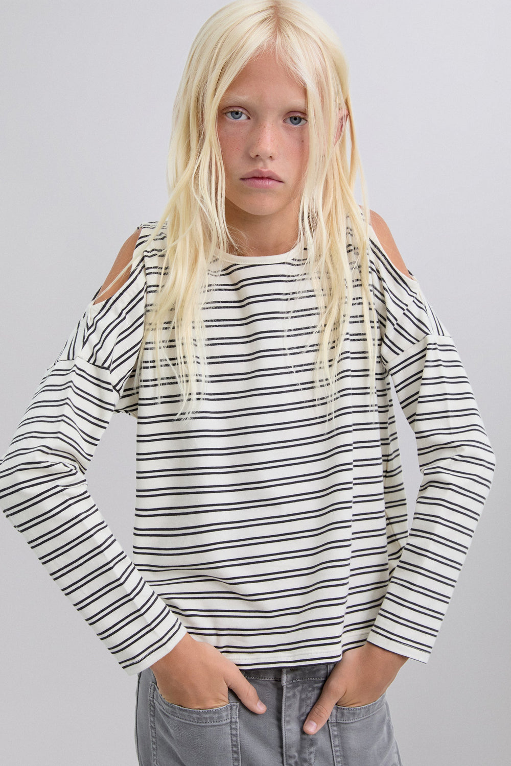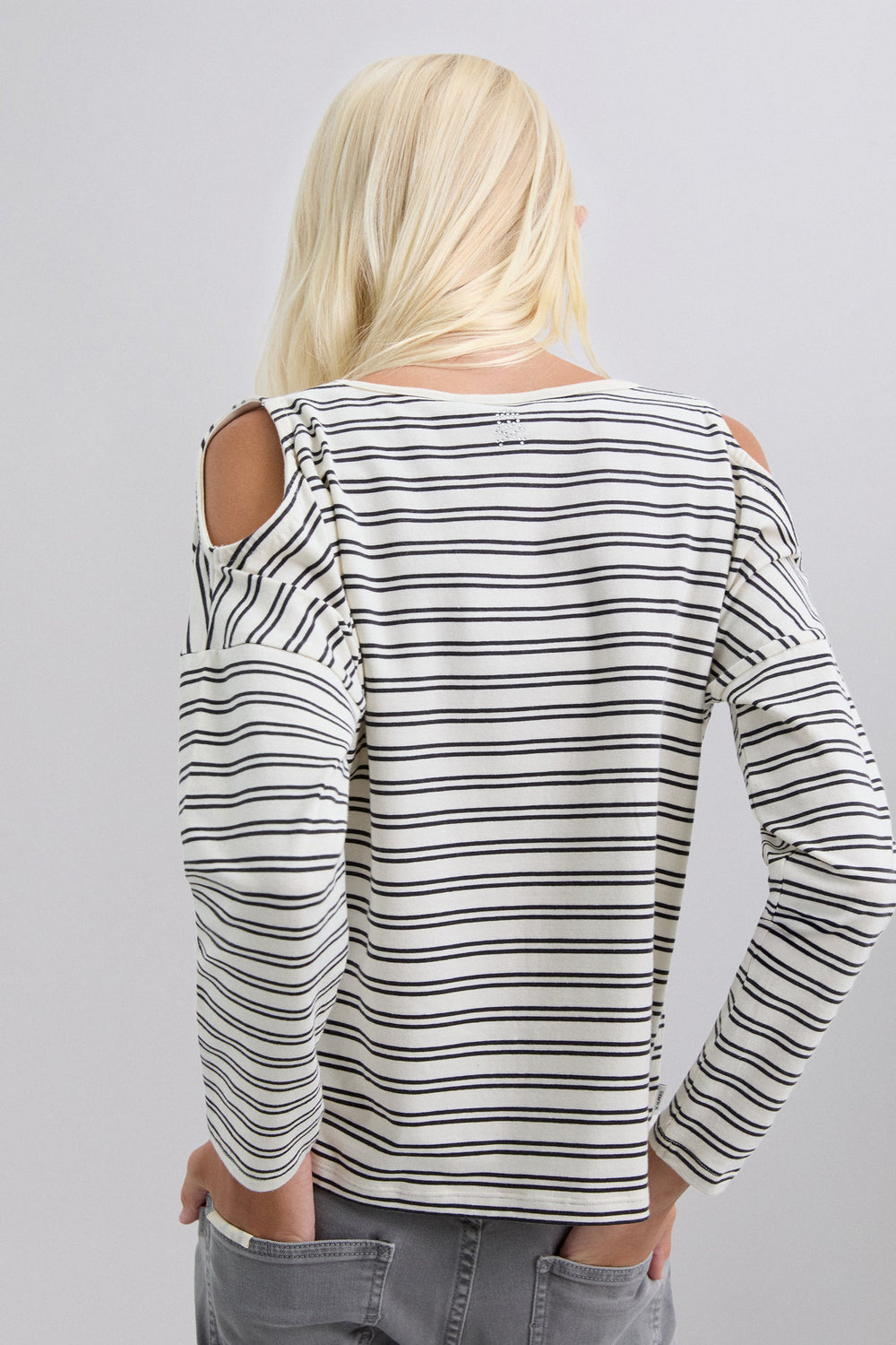 T-shirt made of BCI cotton. Regular Fit. Stripe print. Round neck. Long sleeve with opening at the shoulders. Studded skull detail on the back.