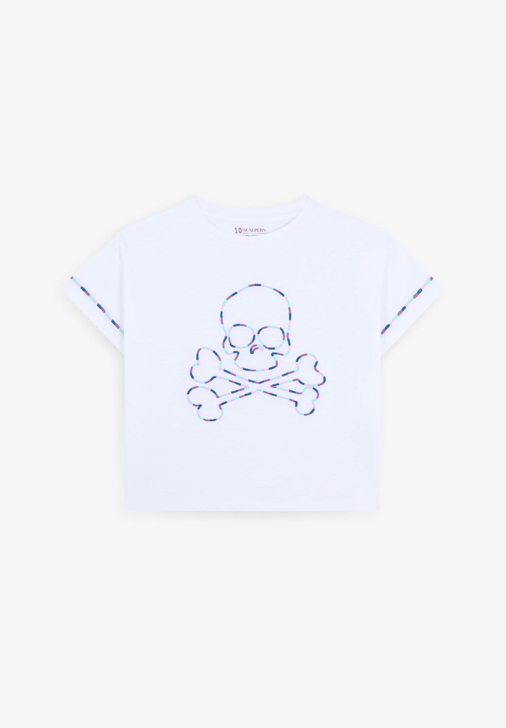 T-SHIRT WITH THREE-TONE EMBROIDERED SKULL