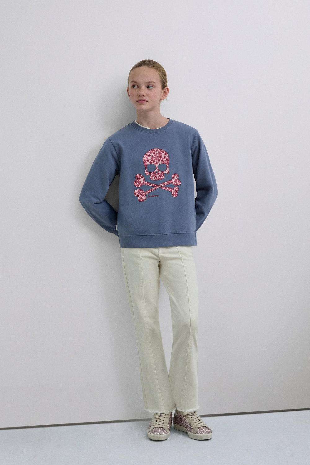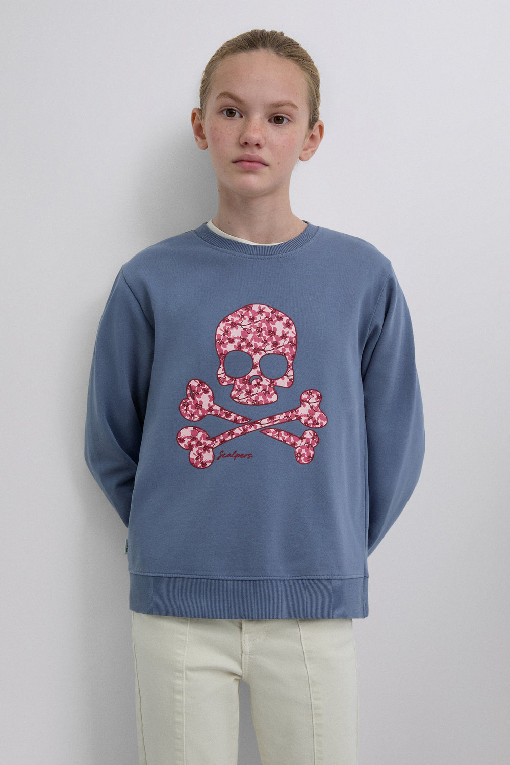 Sweatshirt made of 100% BCI cotton. Long sleeves. Round neck. Embroidered floral motif on front.