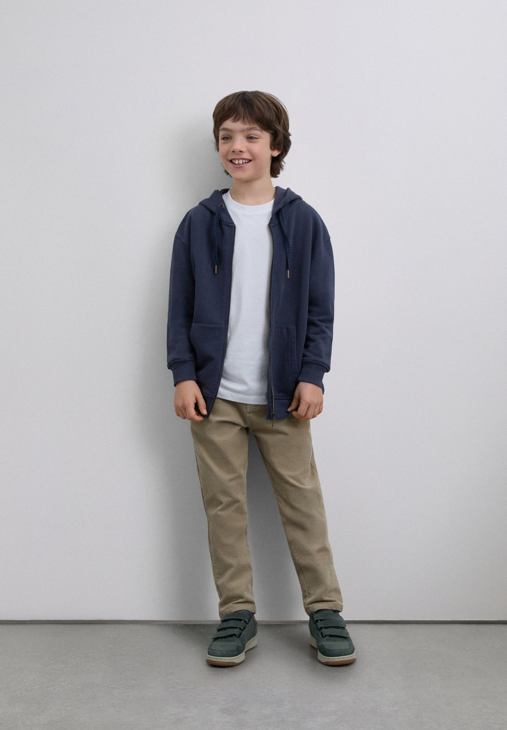 Sweatshirt made of 100% BCI cotton. Hood. Long sleeves. Ribbed trim. Front zip fastening and front pockets. Embroidered logo on the back.