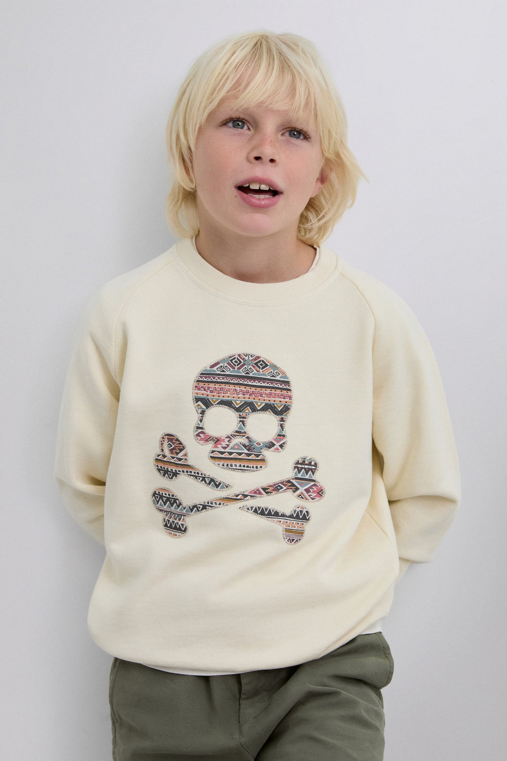 Sweatshirt made of 100% BCI cotton. Regular fit. Round neck. Long sleeves. Front skull print. Ribbed trim.