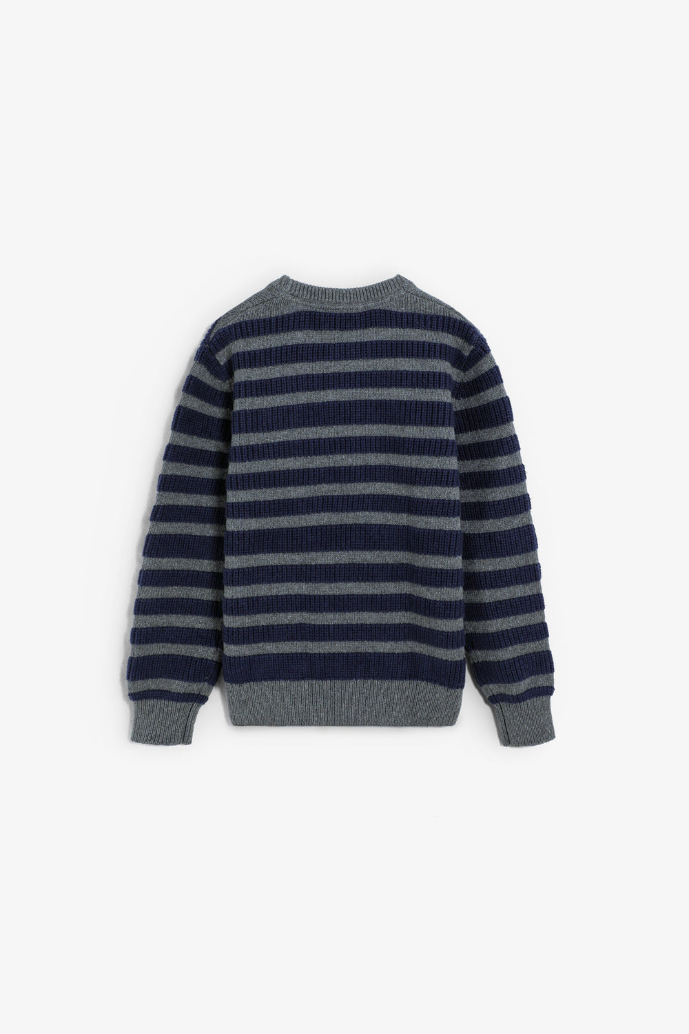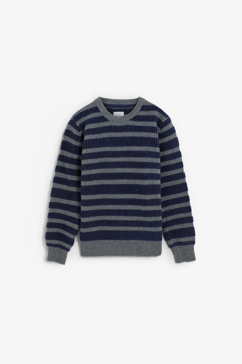 Sweater made of 100% BCI cotton. Stripe print. Round neck. Long sleeves. Ribbed trim.