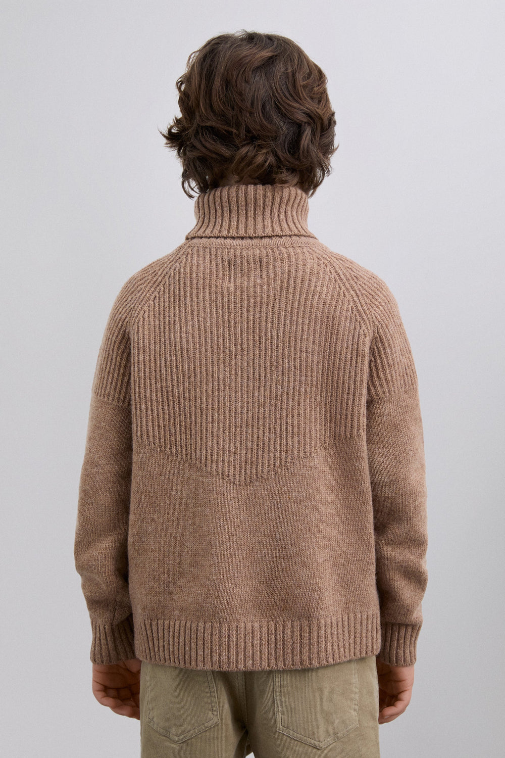 Sweater made of wool and polyamide blend. Regular fit. High round neck. Long sleeves. Embroidered skull detail at the bottom. Ribbed trim.