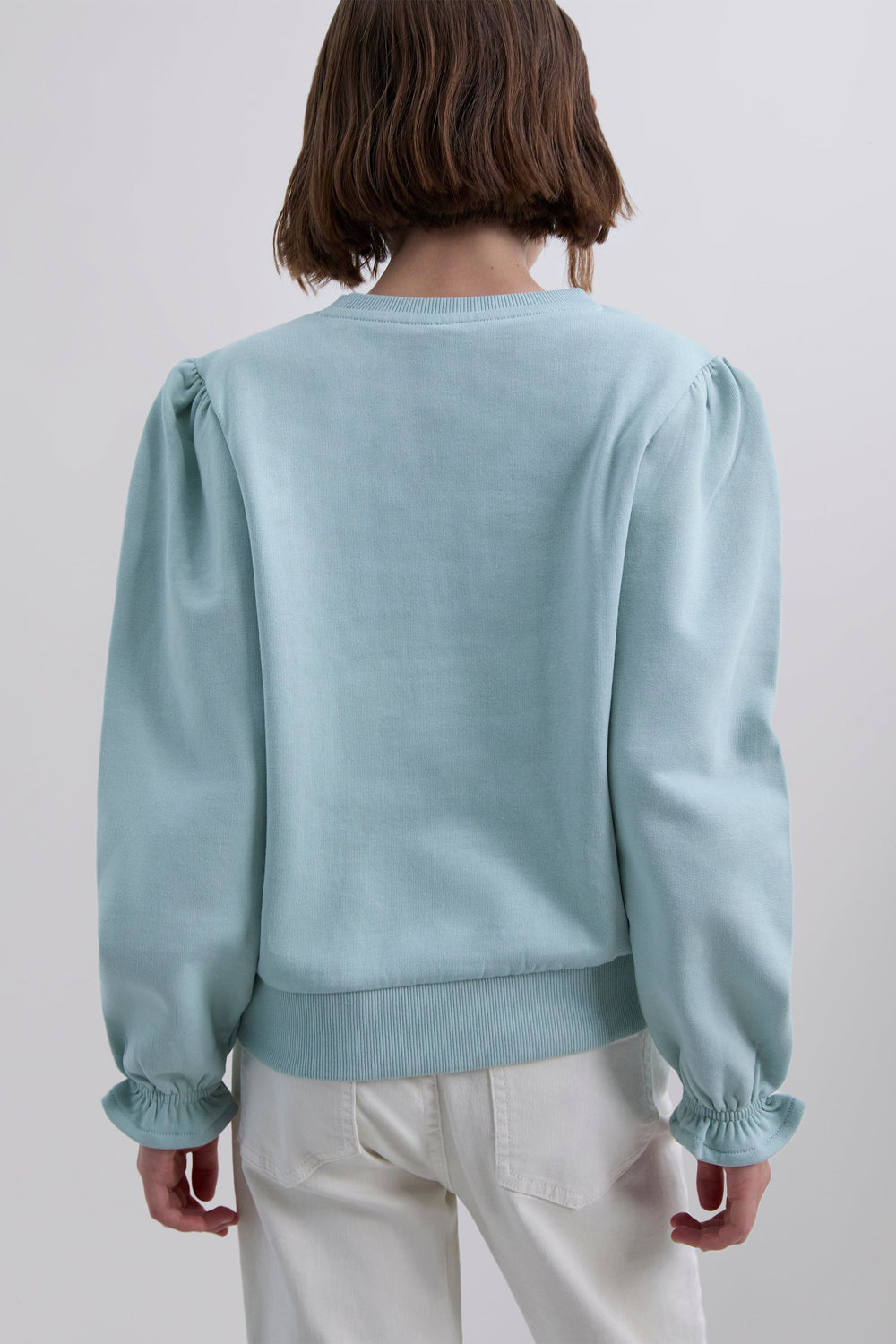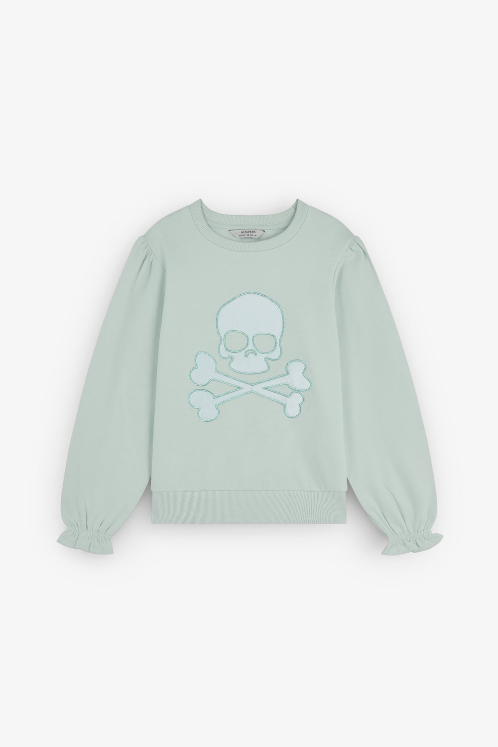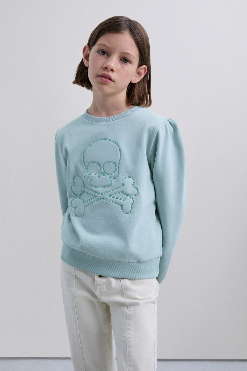 Sweatshirt made of 100% BCI cotton. Round neck. Embroidered skull on the front. Long sleeves. Gathered detail on elasticated cuffs