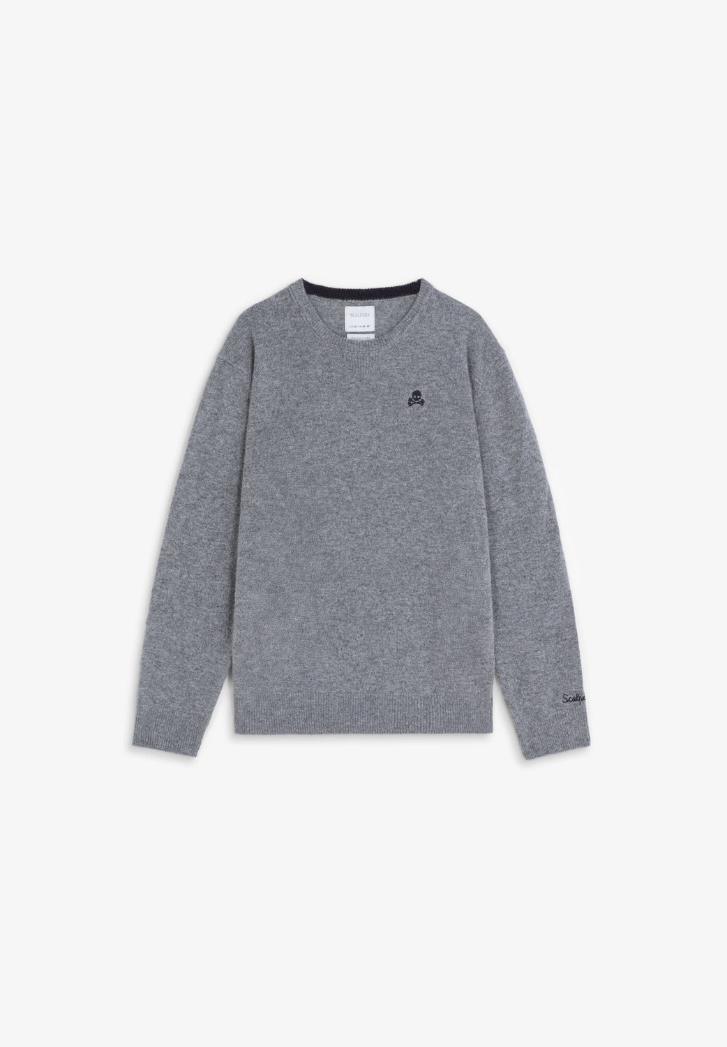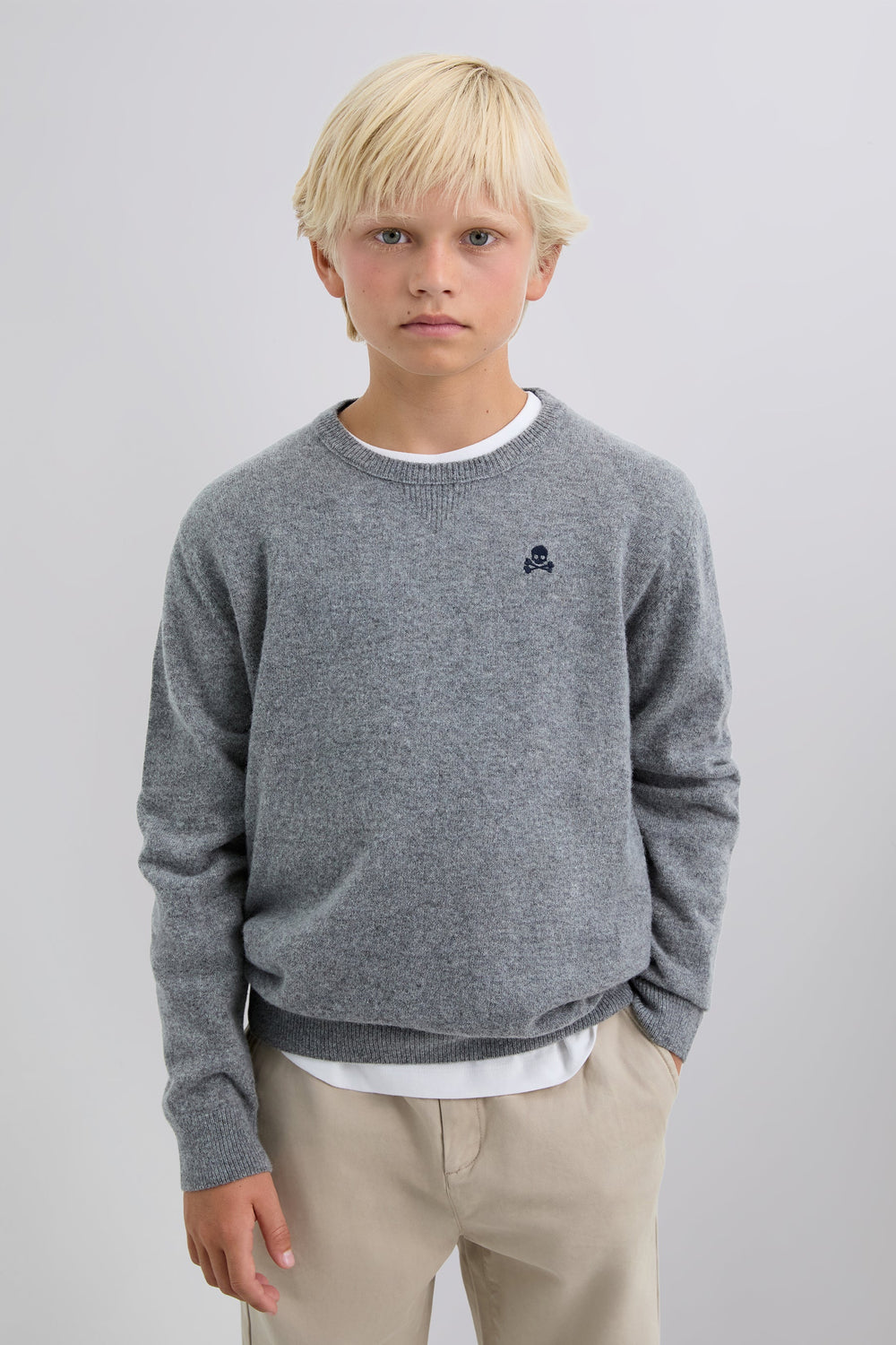 Sweater made of wool and polyamide blend. Regular fit. Round neck. Long sleeves. Contrast embroidered skull detail. Ribbed trim. Skull patch detail on the elbow pads.