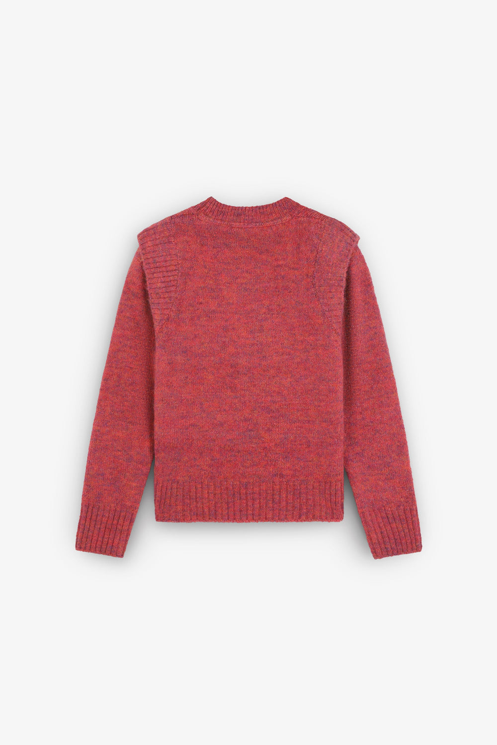 Knit sweater. Long sleeves. Round neck. Ribbed trim. Metallic skull detail.