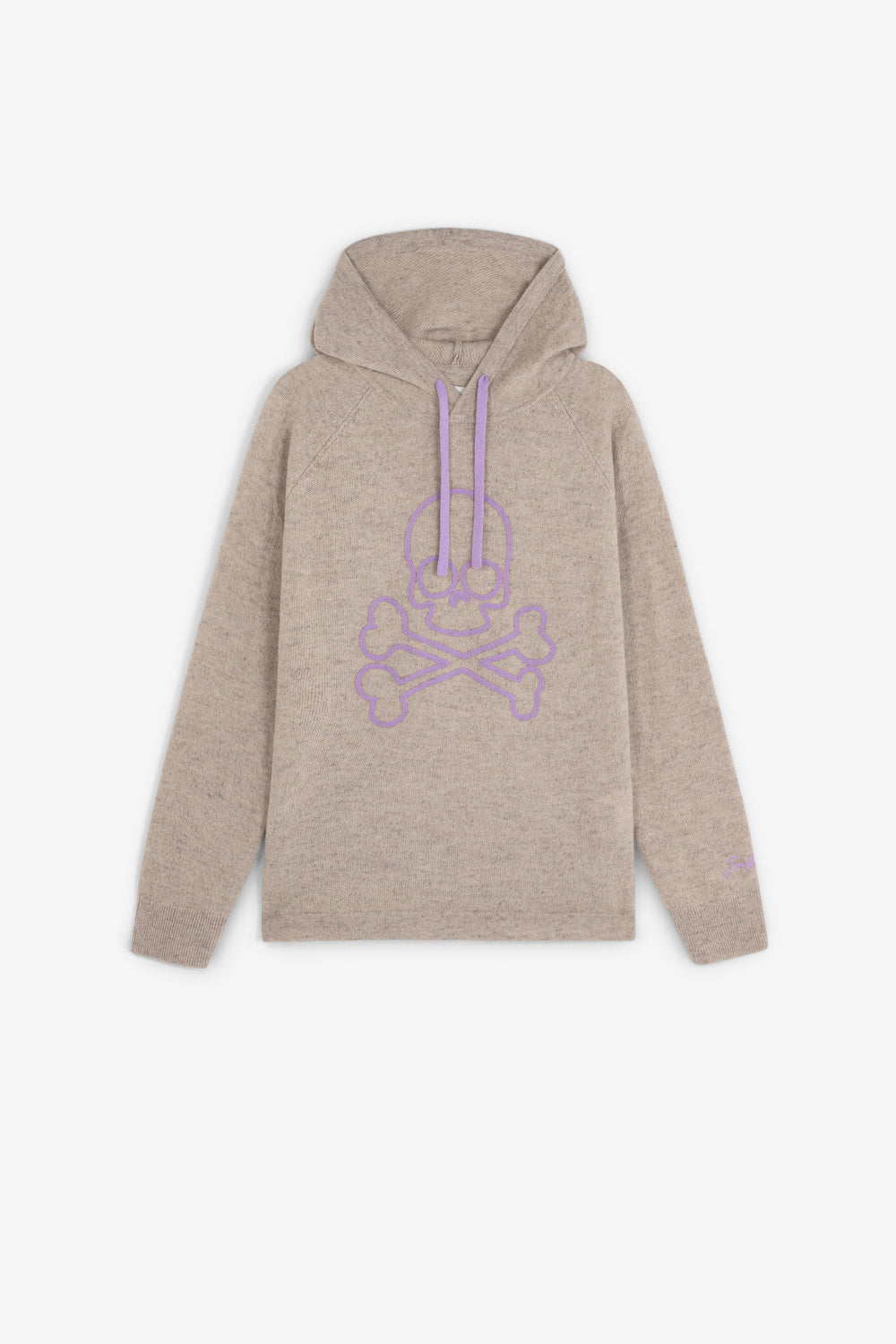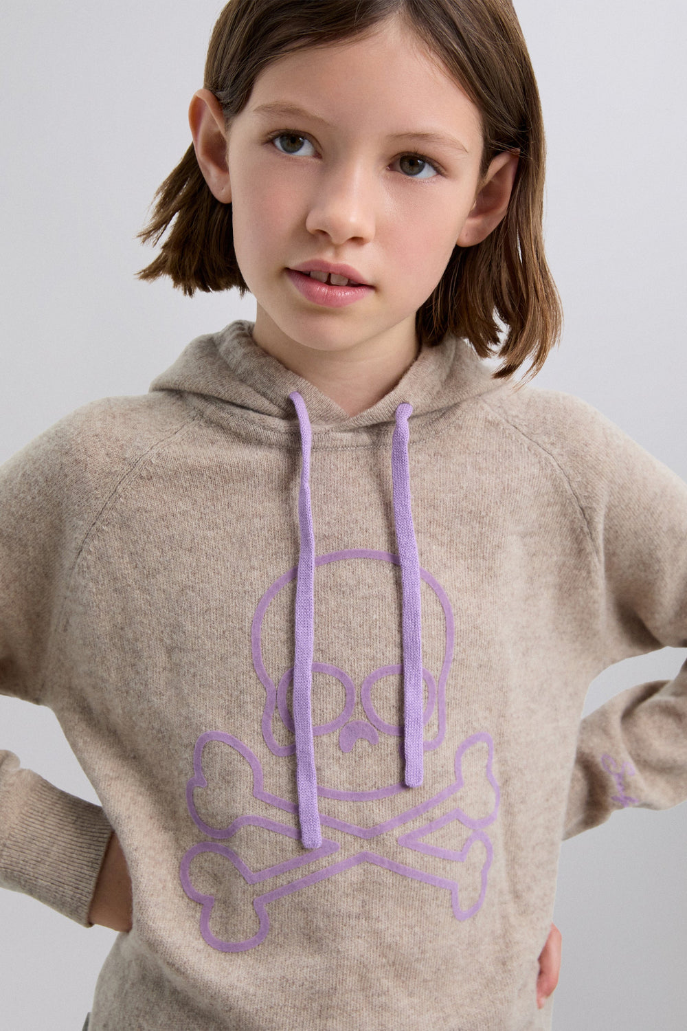 Sweater with adjustable hood. Contrast skull print on front. Long sleeves.