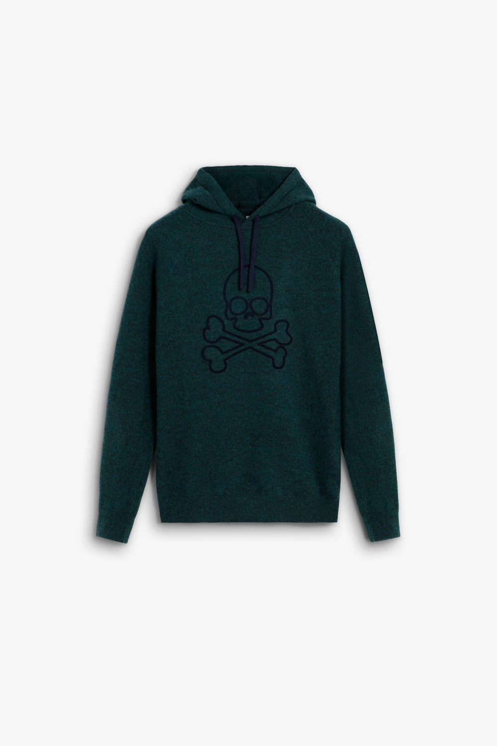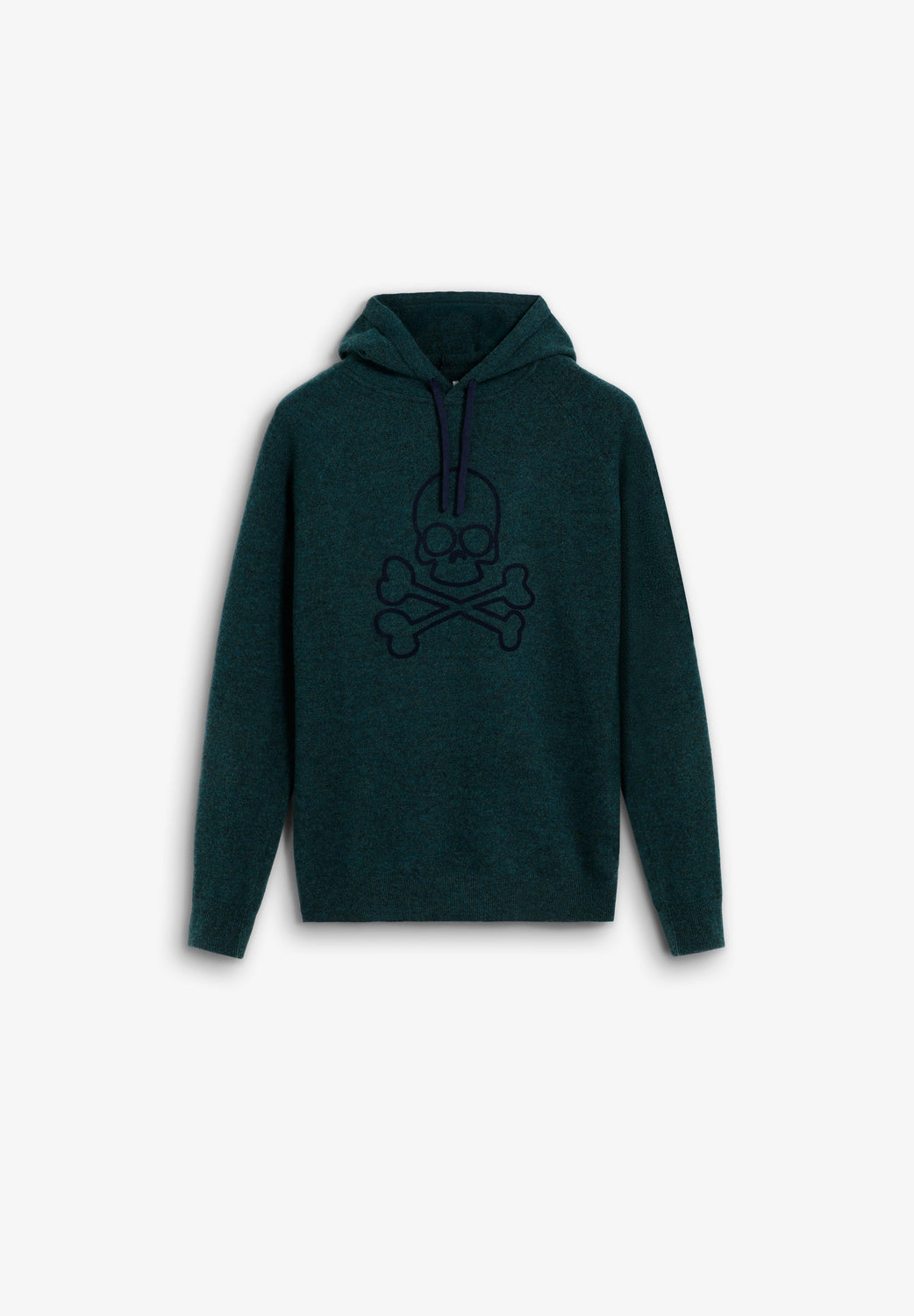 Long sleeve hooded sweater. Regular fit. Collar with adjustable hood. Contrast front skull detail.