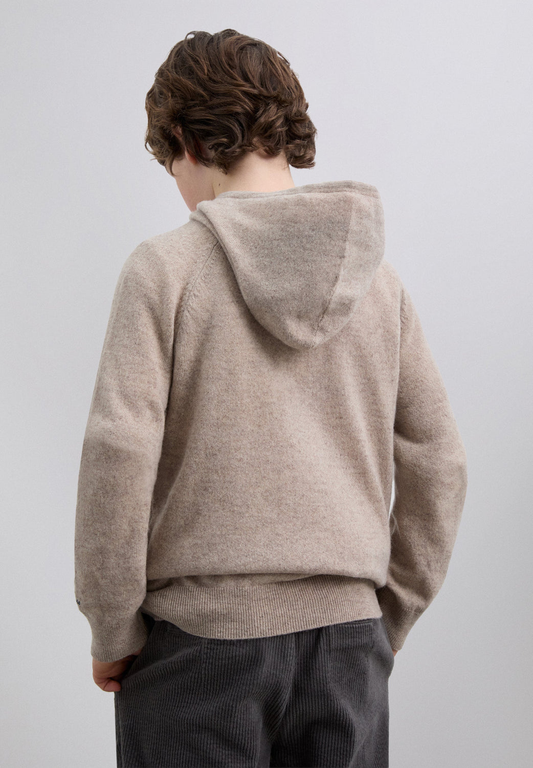 Long sleeve hooded sweater. Regular fit. Collar with adjustable hood. Contrast front skull detail.