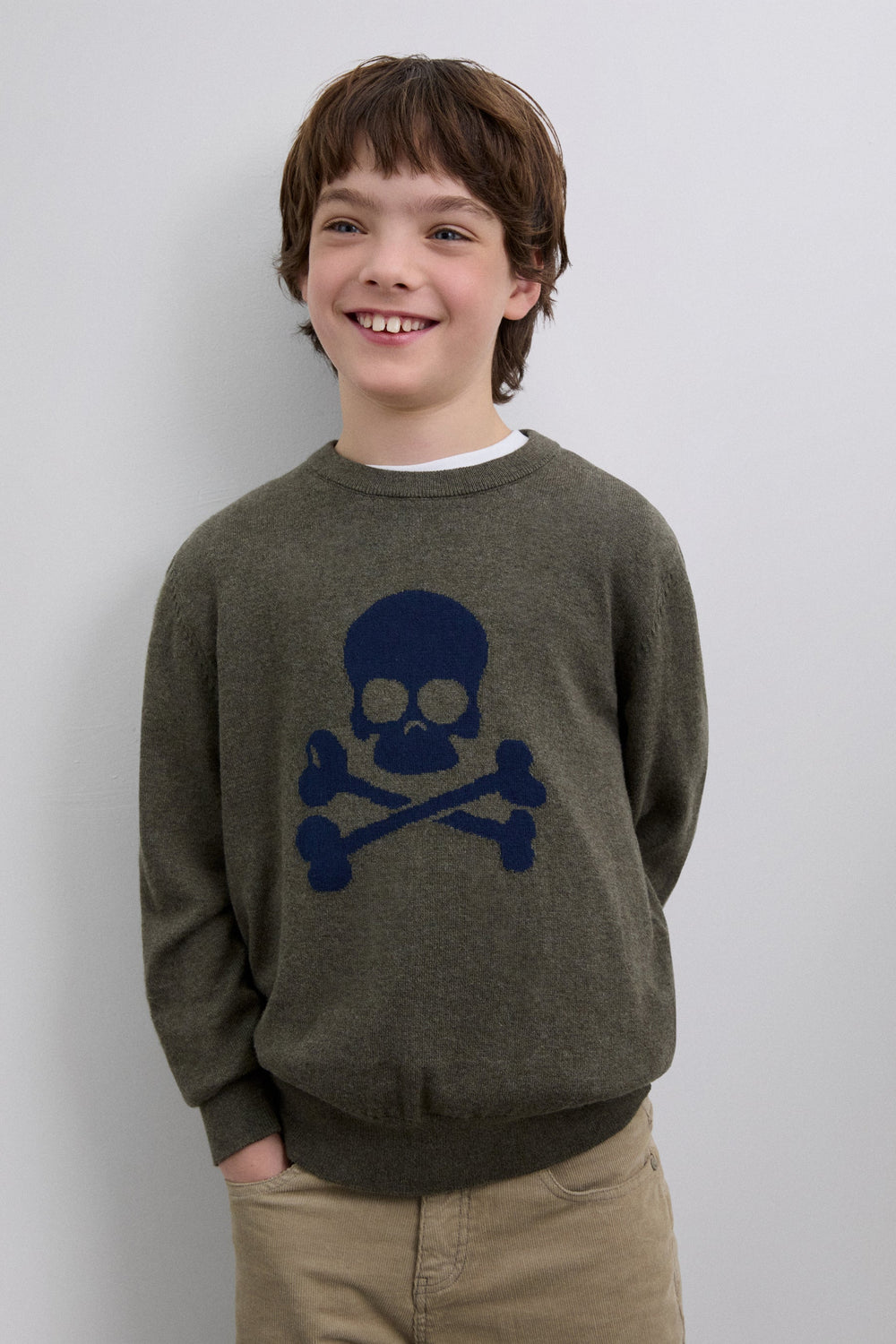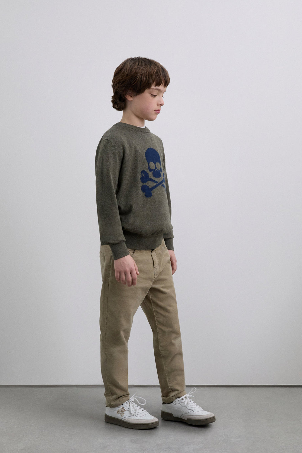 Sweater made of 100% BCI cotton. Long sleeves. Round neck. Regular fit. Contrast front skull detail.