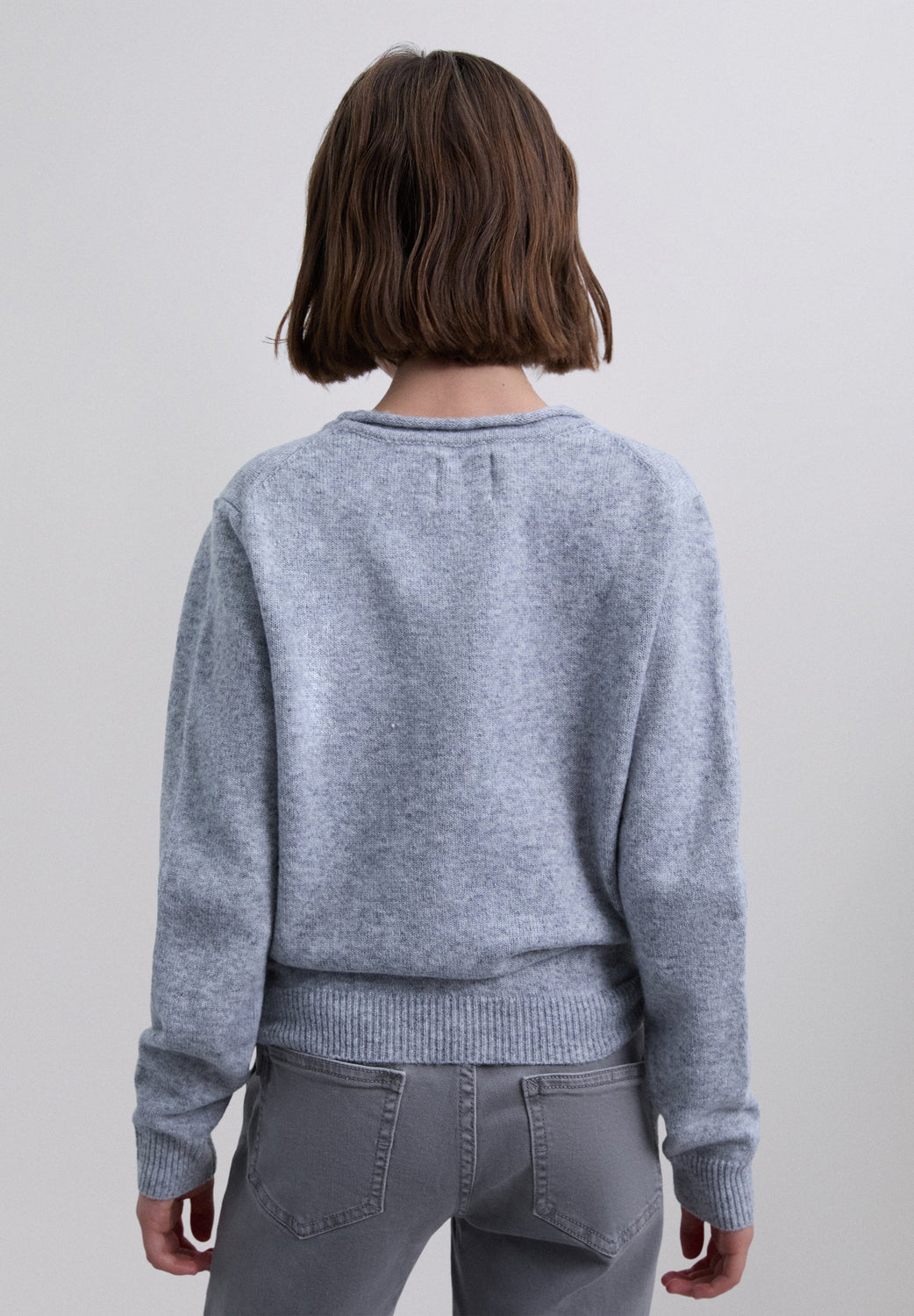 Sweater made of a synthetic blend with rhinestone logo print. Round neck. Long sleeves. Ribbed trim.