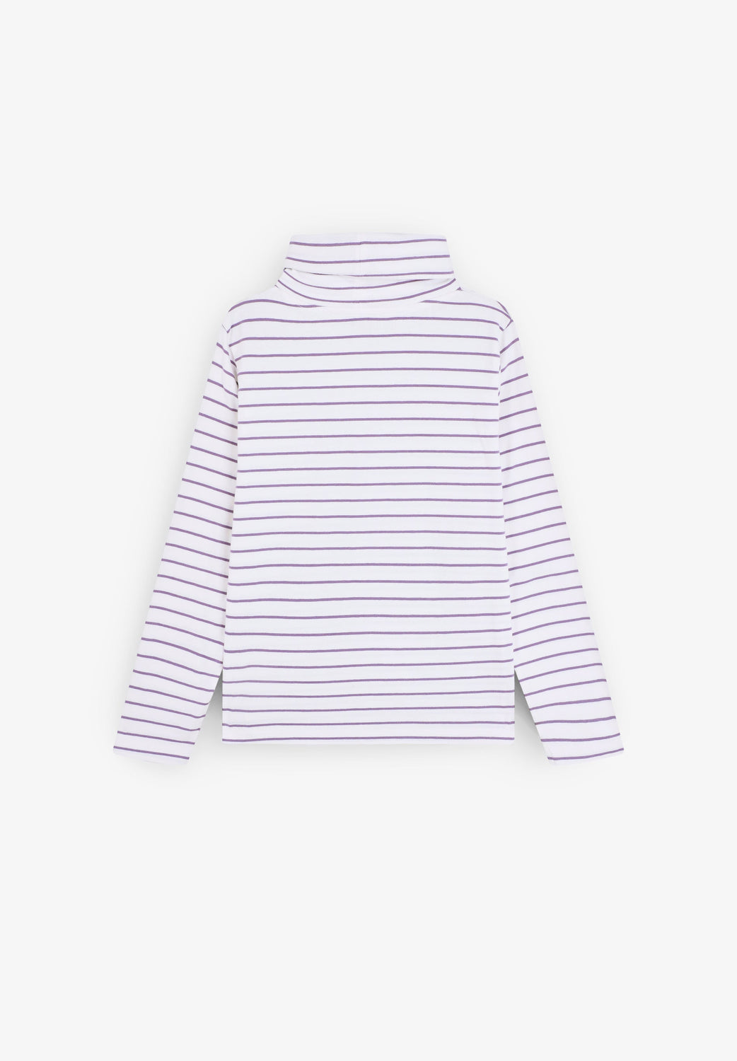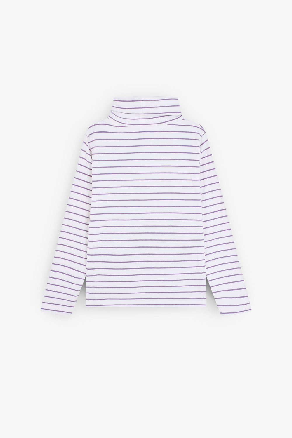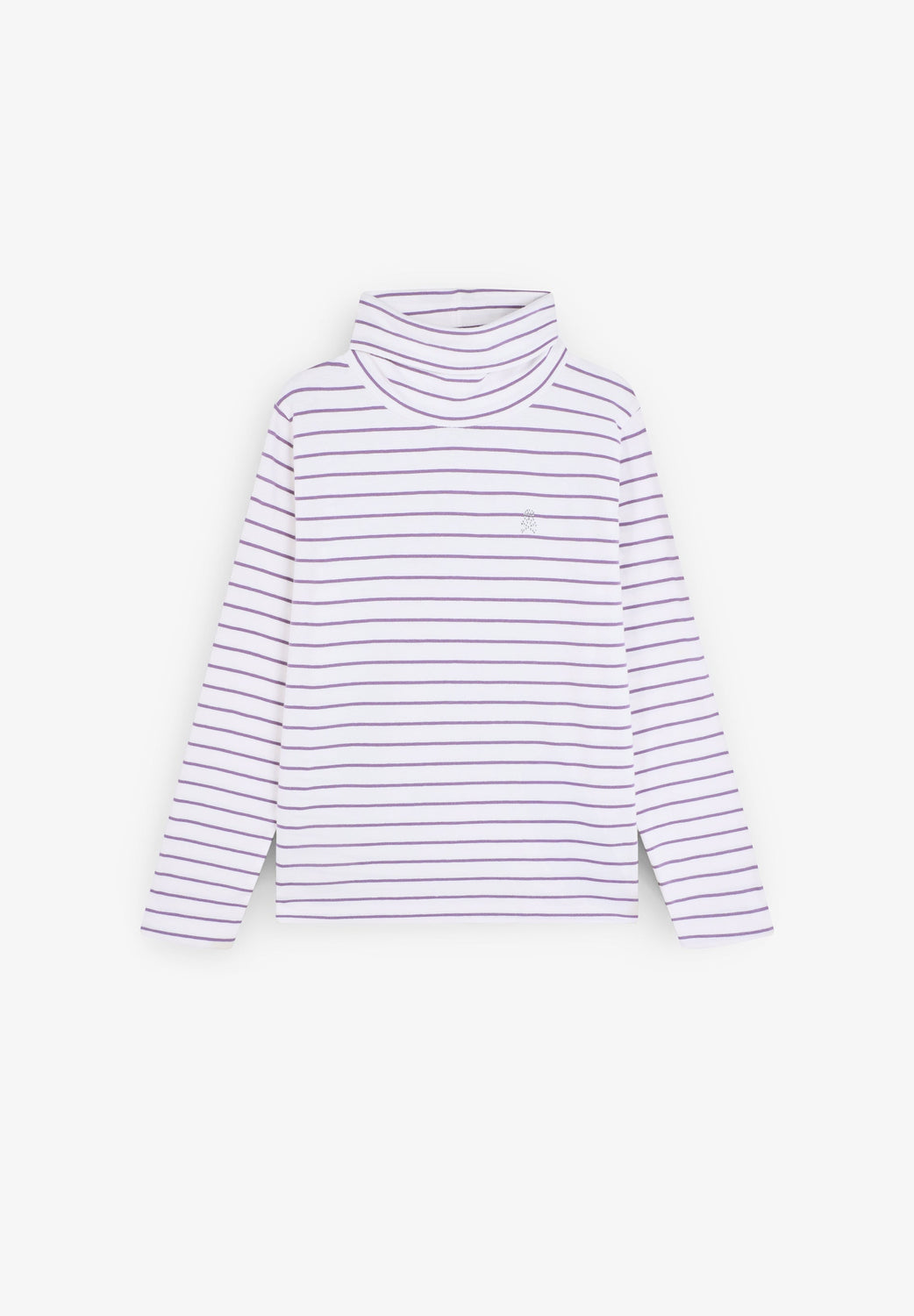 Striped T-shirt made of 100% BCI cotton. Long sleeves and turn-down collar. Logo detail on the chest.