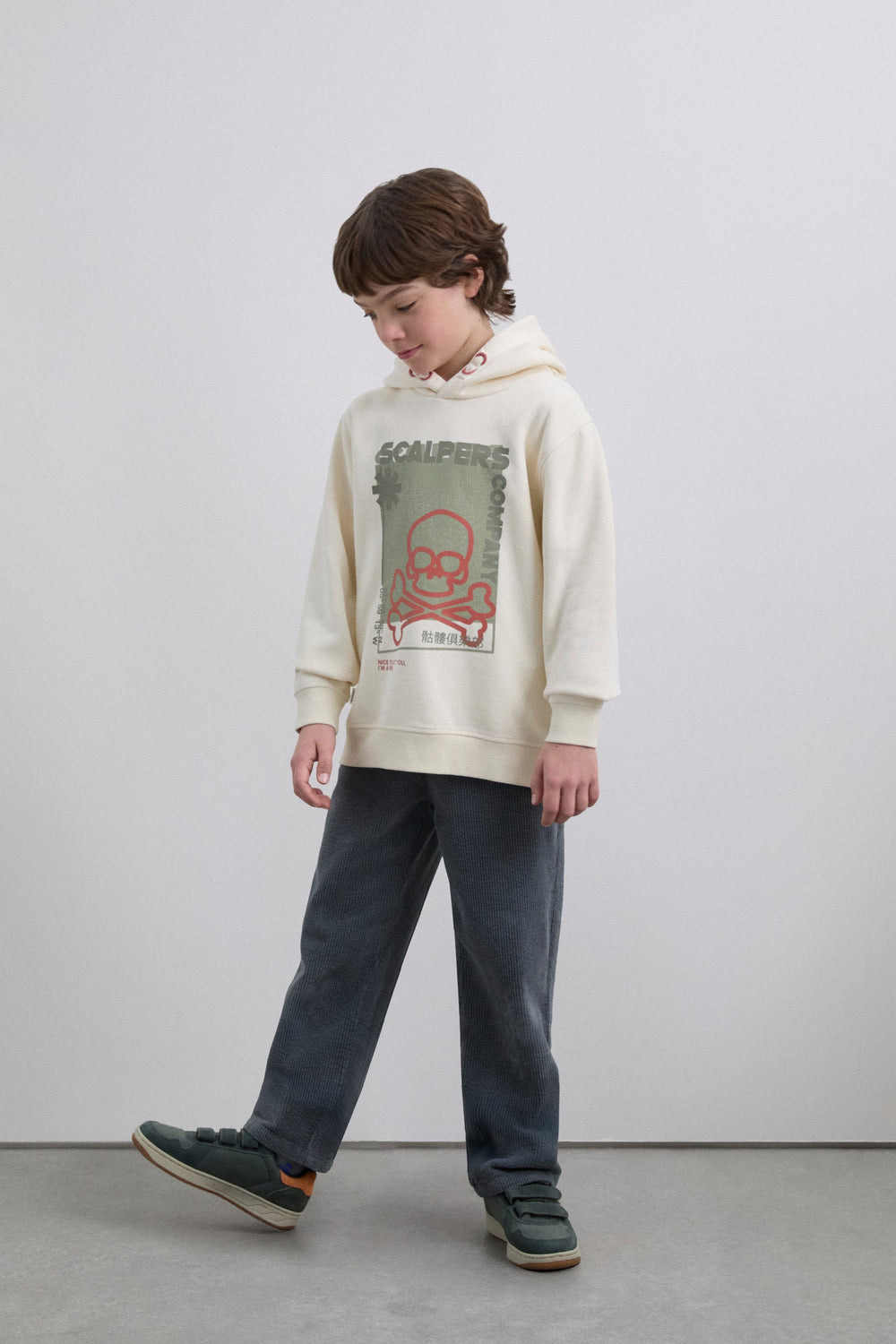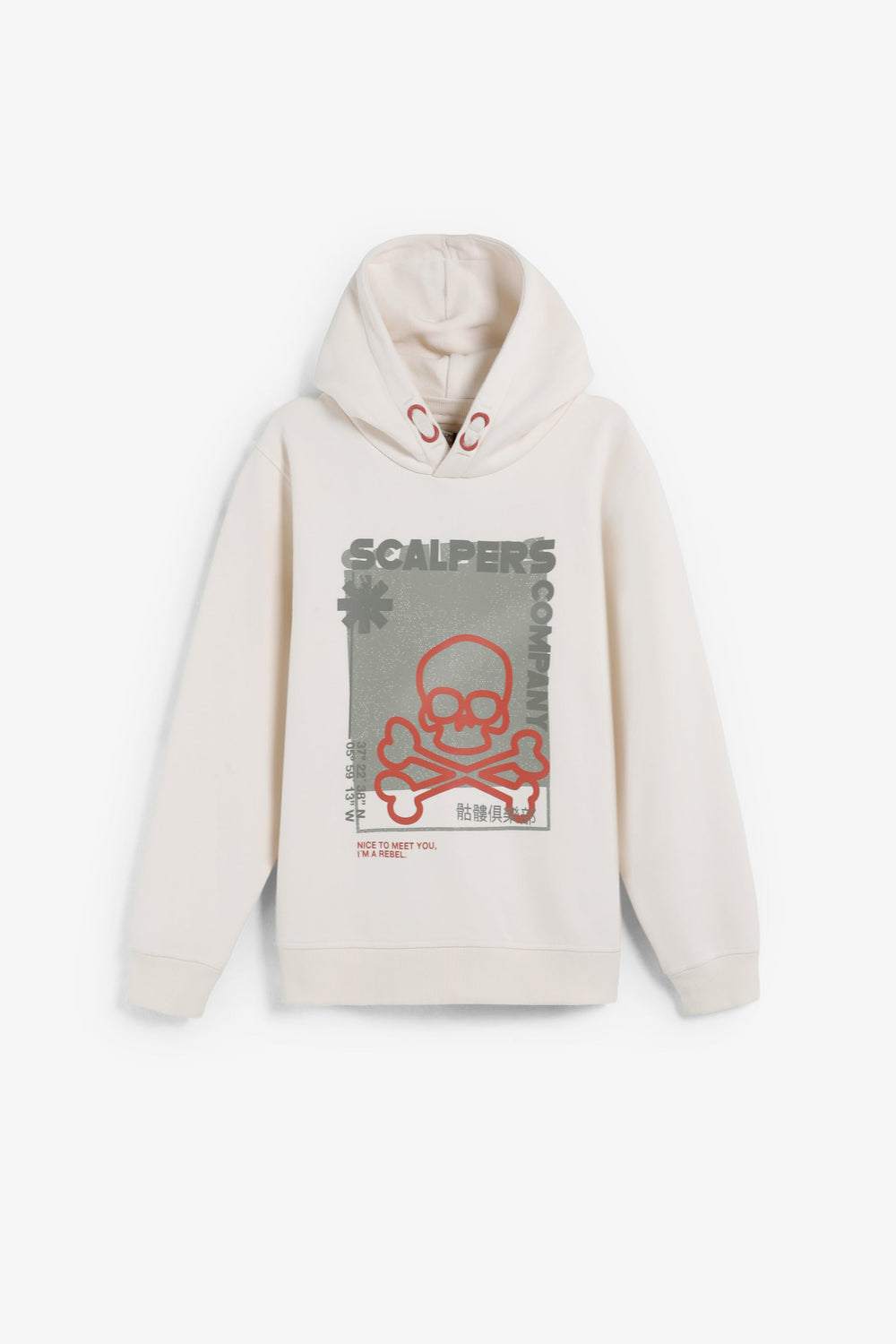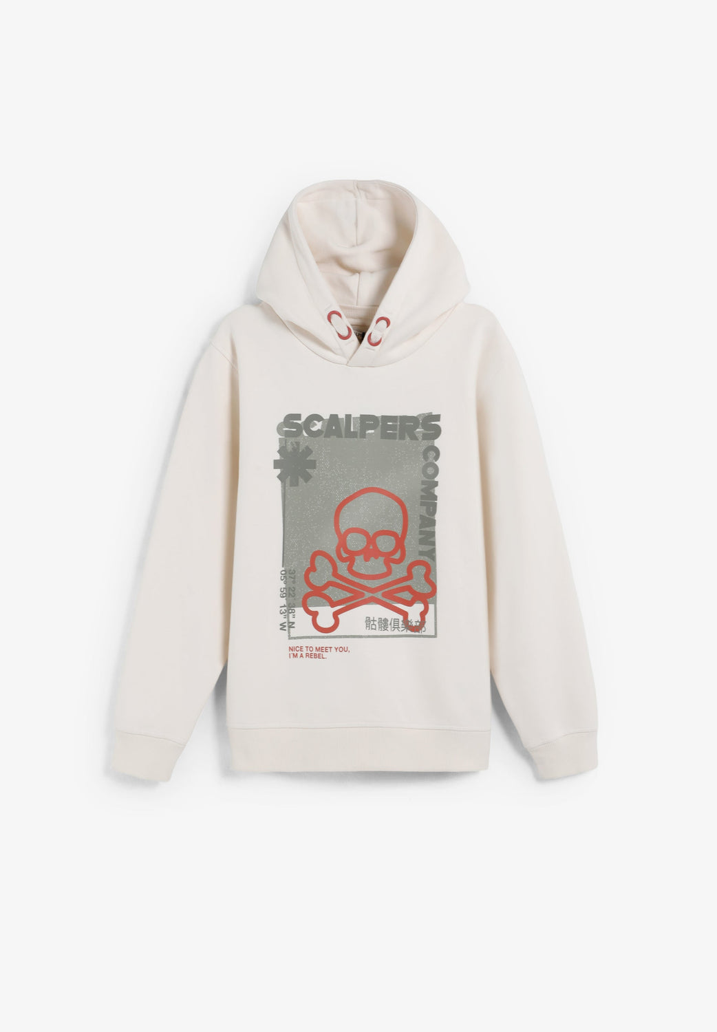 Sweatshirt with adjustable hood. Regular fit. Long sleeves. Front print with logo and skull. Ribbed trim.