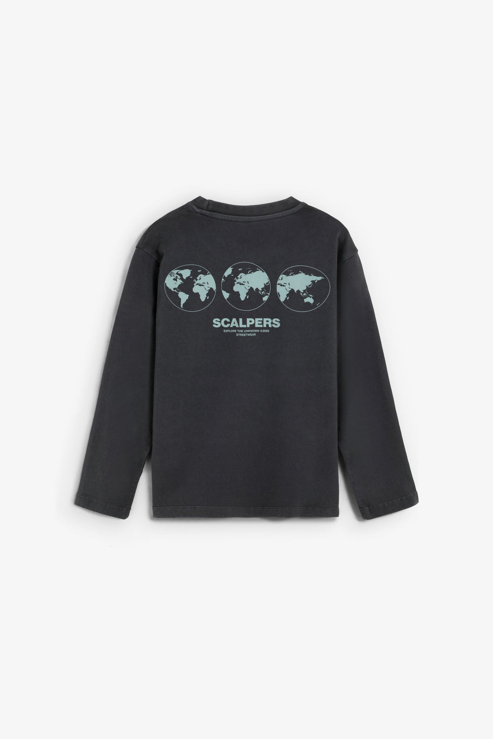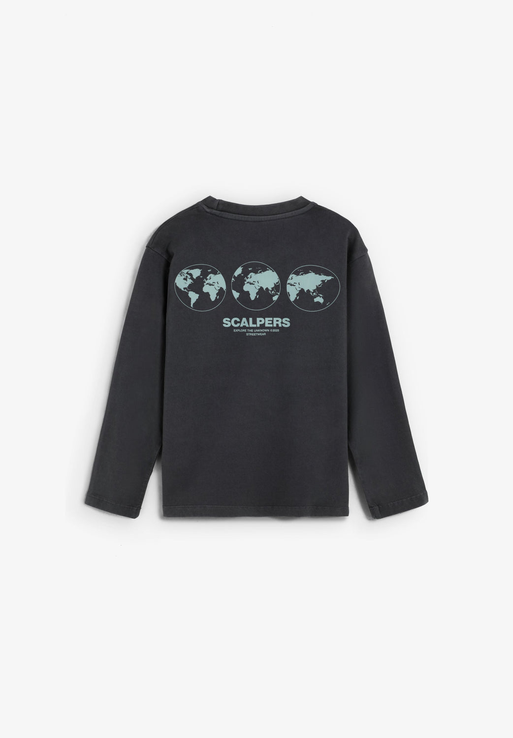 Long sleeve T-shirt with print on the chest and back. Made of 100% BCI cotton. Regular fit. Round neck.